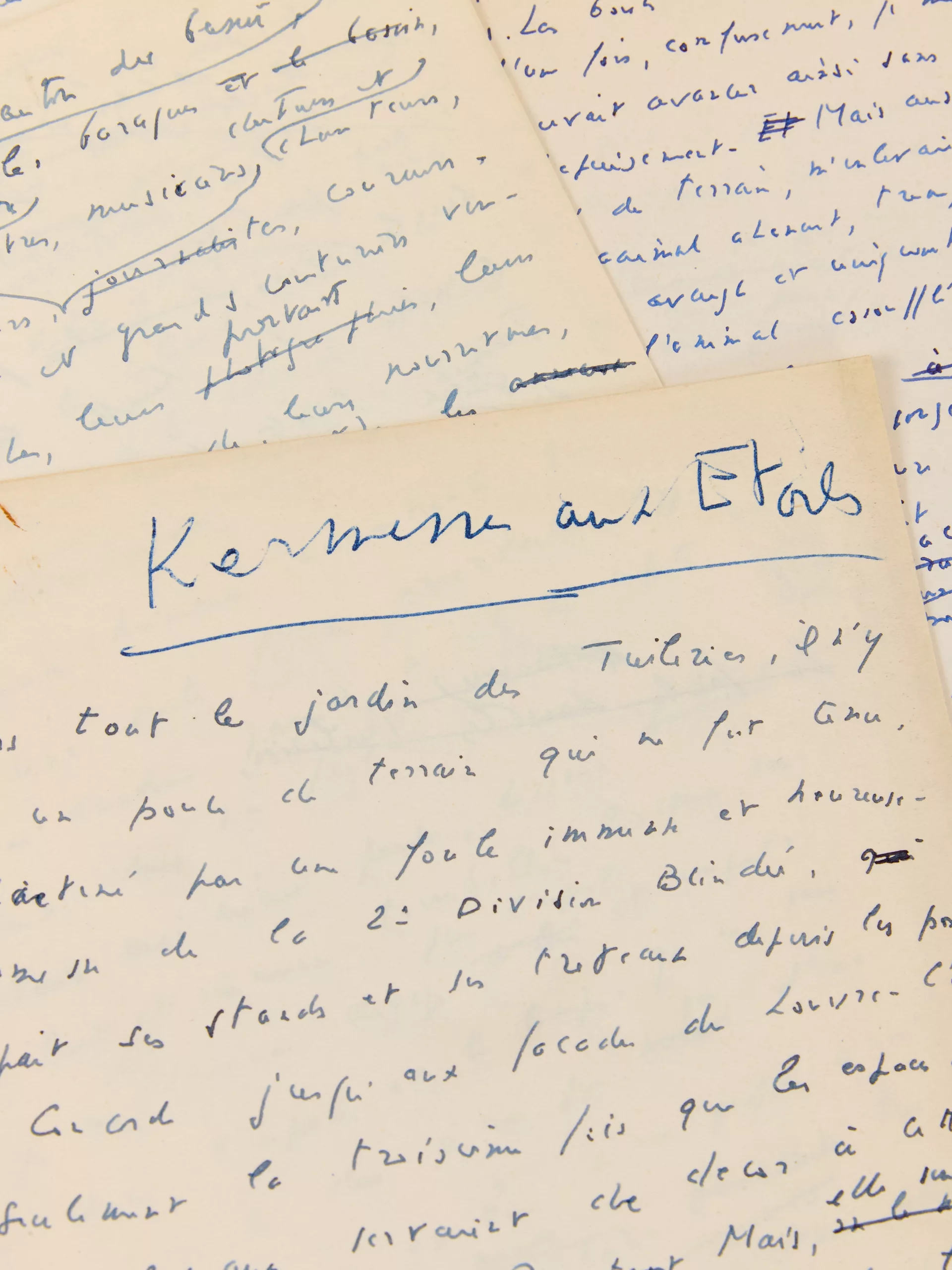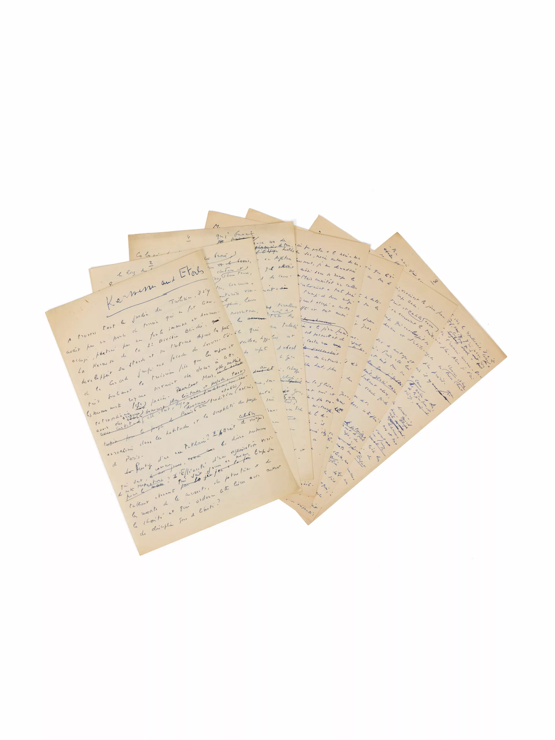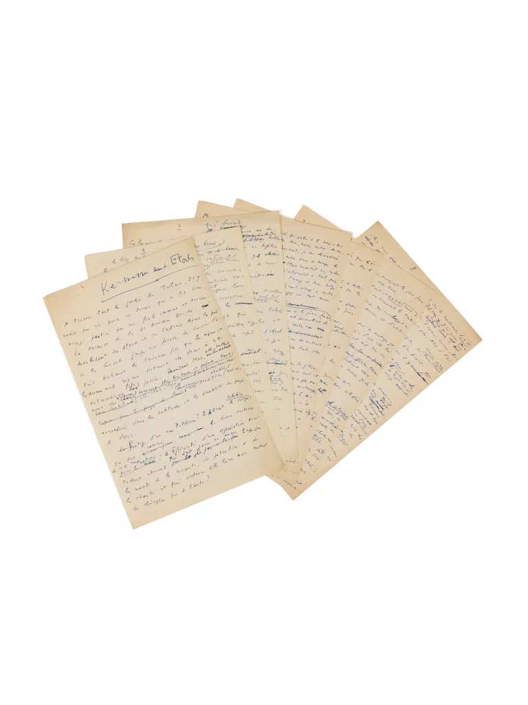 Nombreuses ratures et corrections, dont plusieurs passages inédits non repris dans l’article, bien plus court que ce manuscrit.