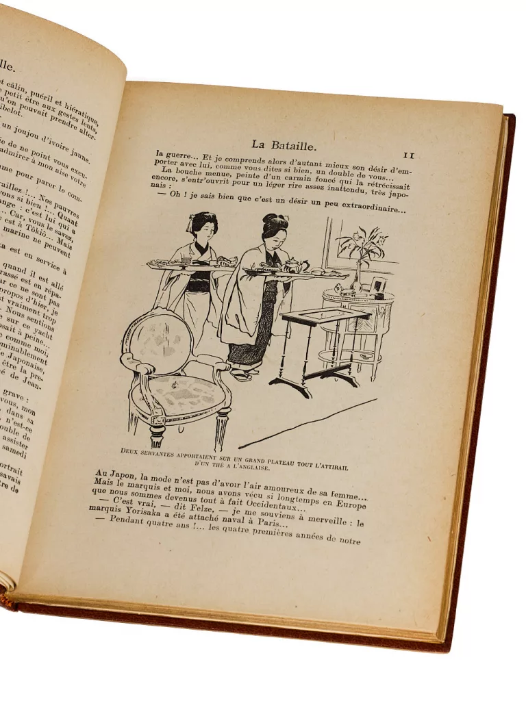Écrit en 1909 – soit quatre ans après la guerre russo-japonaise -, La Bataille a connu un succès considérable, à tel point tel que Guerlain emprunta le nom de l’héroïne principale pour son parfum « Mitsouko ». La bataille en question est celle de Tsou-Shima qui vit l’escadre japonaise de l’amiral Togo détruire en quelques heures la flotte Russe de l’amiral Rojestvenski.