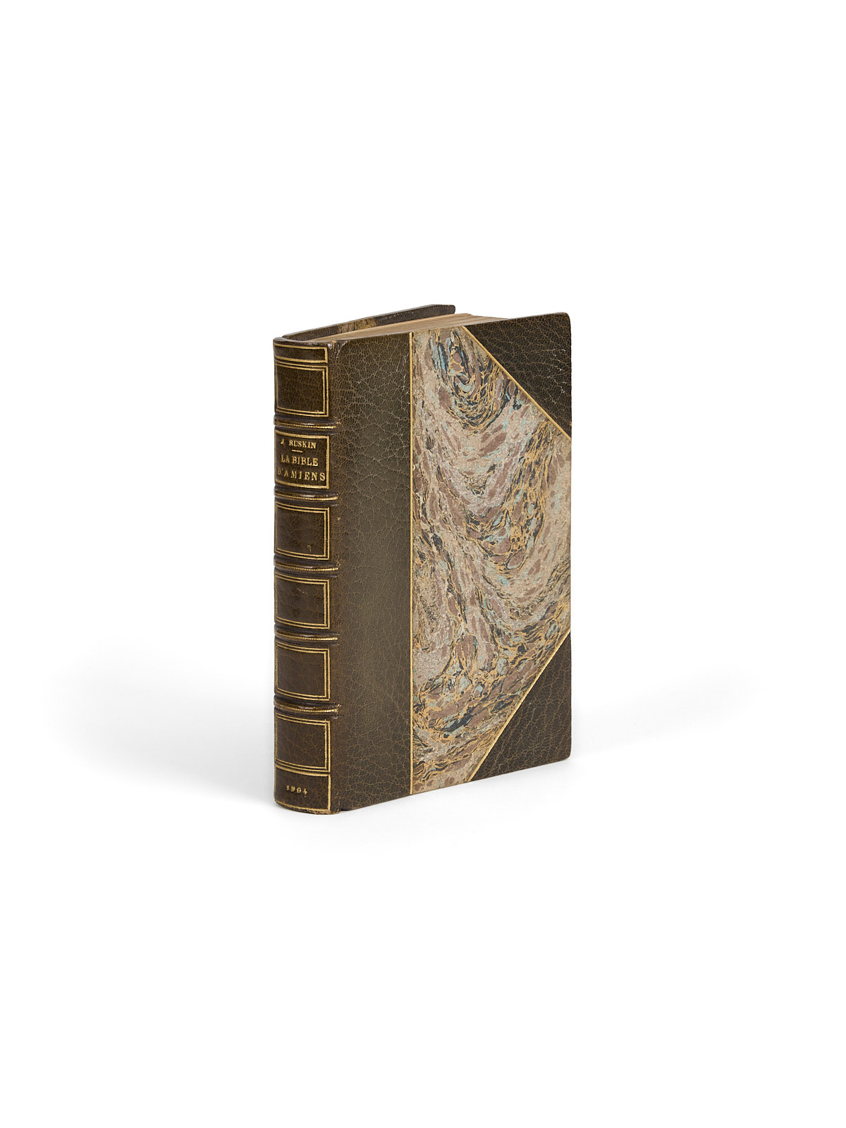 L’exemplaire fut probablement établi par le libraire Ronald Davis dans les années 1920-1930, lorsqu’il fit relier à l’identique tout un ensemble d’oeuvres de Proust (Christie’s, Londres, 2007, lot n° 133), dont un Swann et un volume sur hollande de La Bible d’Amiens.