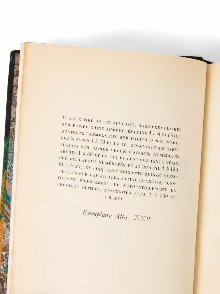 Un des 575 exemplaires sur alfa, celui-ci hors-commerce (n° XXV).
