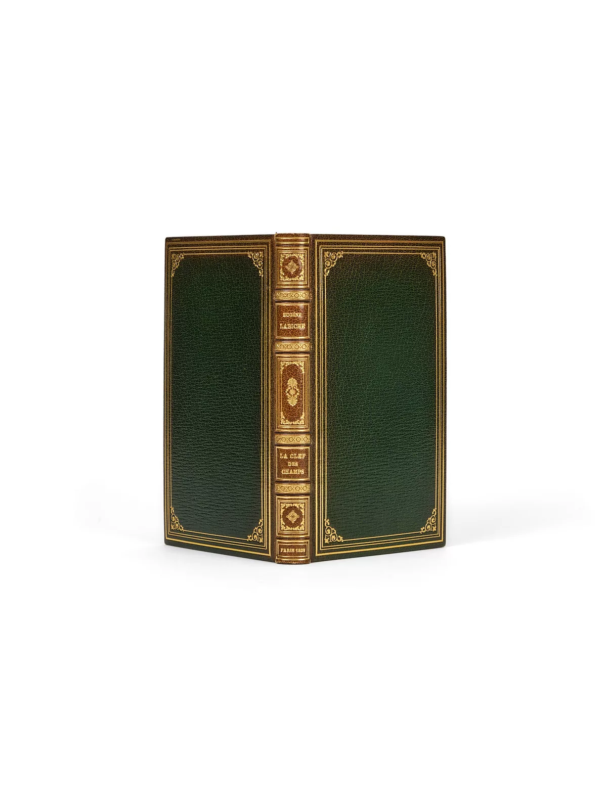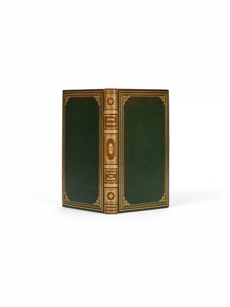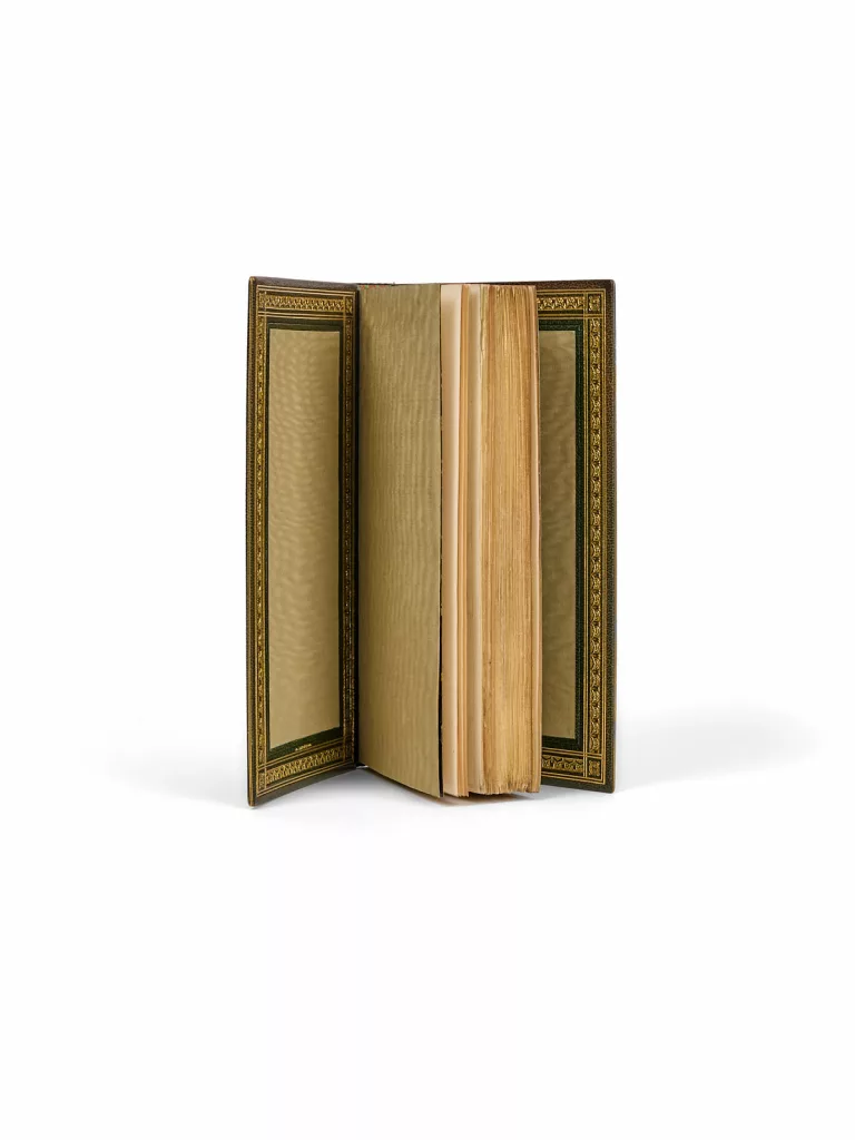 1 vol. (135 x 220 mm) de [2] f. et 232 p. Maroquin vert à grain long, dos à nerfs richement orné, filets dorés d'encadrement sur les plats avec fleurons, contreplats à encadrement avec listel de maroquin, doubles gardes moirées et papier caillouté, tranches dorées sur témoins, couverture imprimée et dos conservés (reliure signée d'E. Maylander).