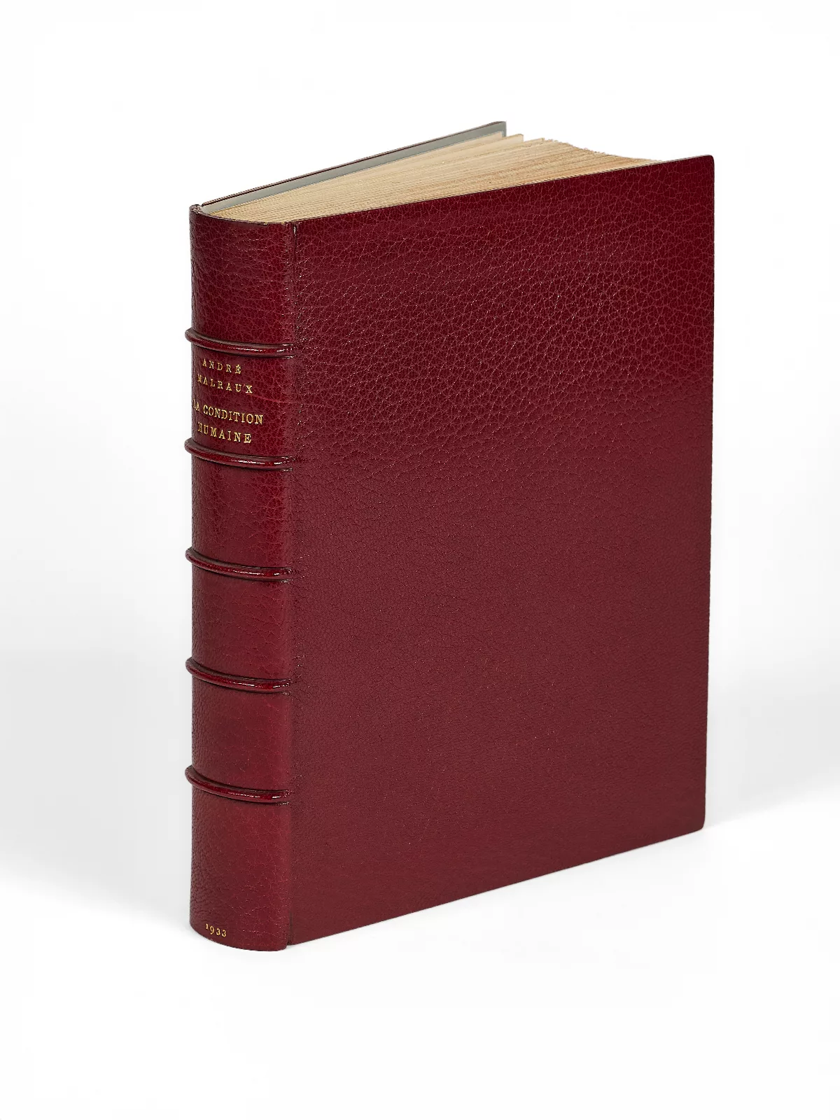 Nous n’avons pu croiser que deux autres exemplaires réimposés de La Condition humaine dédicacés, parmi les 19 que nous avons recensés, soit la moitié du corpus : l’un, relié par Martin ; l’autre, par Miguet. Aucun des quatre exemplaires reliés par Paul Bonet ne l’était.