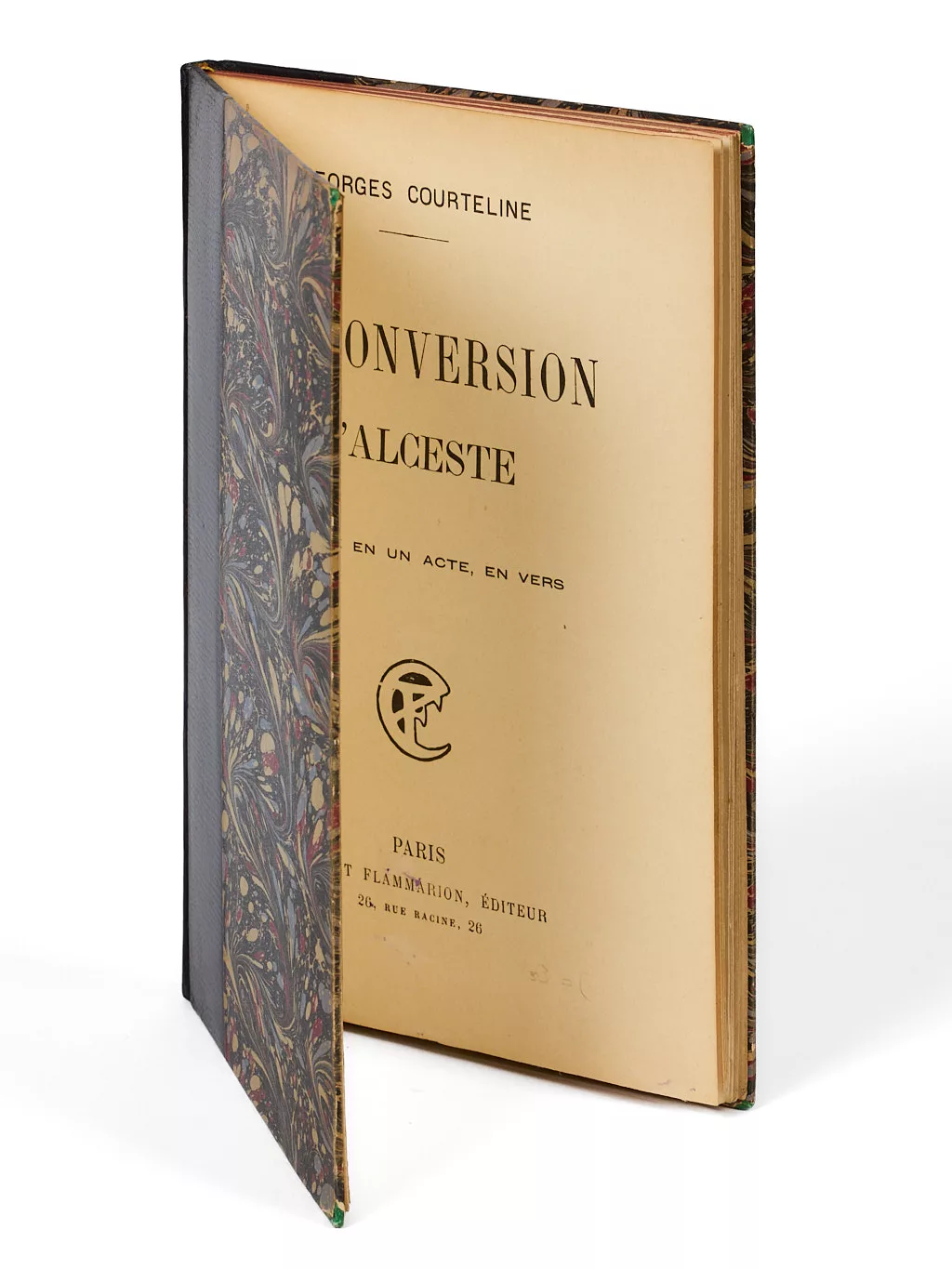 Laquelle retient par ailleurs l’attention des bibliophiles, puisque la « Société des XX» la choisit pour être la première pièce qu’elle éditera. Elle est imprimée sur les presses de l’Imprimerie Nationale, avec deux états d’un frontispice, à l’imitation des originales de Molière pour le format, les papiers, la typographie, les fleurons, le frontispice et même l’orthographe, établie dans une reliure de vélin à rabats.
