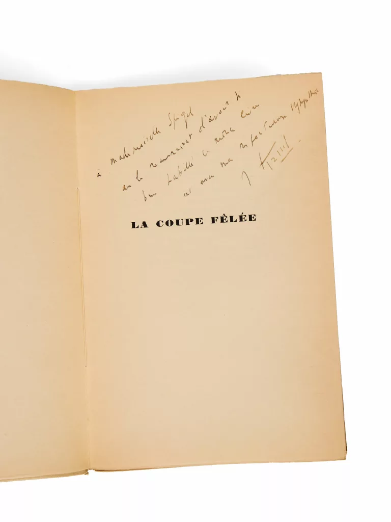 Envoi signé : « à mademoiselle Spigel (sic), en la remerciant d'avoir si bien habillé ce même livre, et avec ma respectueuse sympathie, J. Kessel ».