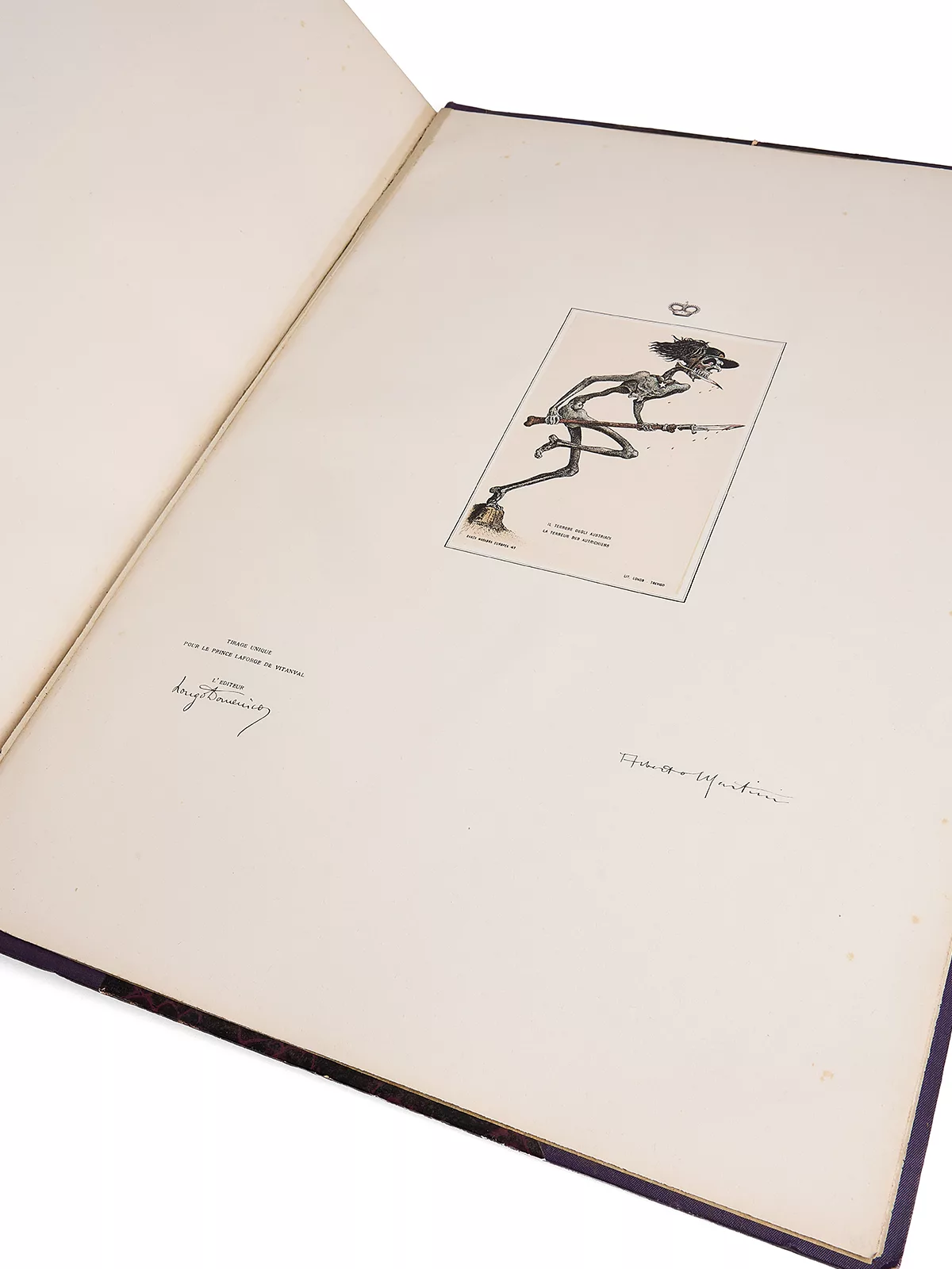 L’éditeur italien Domenico Longo, l’éditeur des cartes de Martini, tomba sous le charme du Prince, et accepta de lui publier un livret sur une de ses « inventions », l’avion de grand combat Vitanval. En affaires avec l’excentrique, il lui composa avec grand luxe cet album unique, faisant surmonter chaque lithographie de la « couronne impériale de Vitanval ».