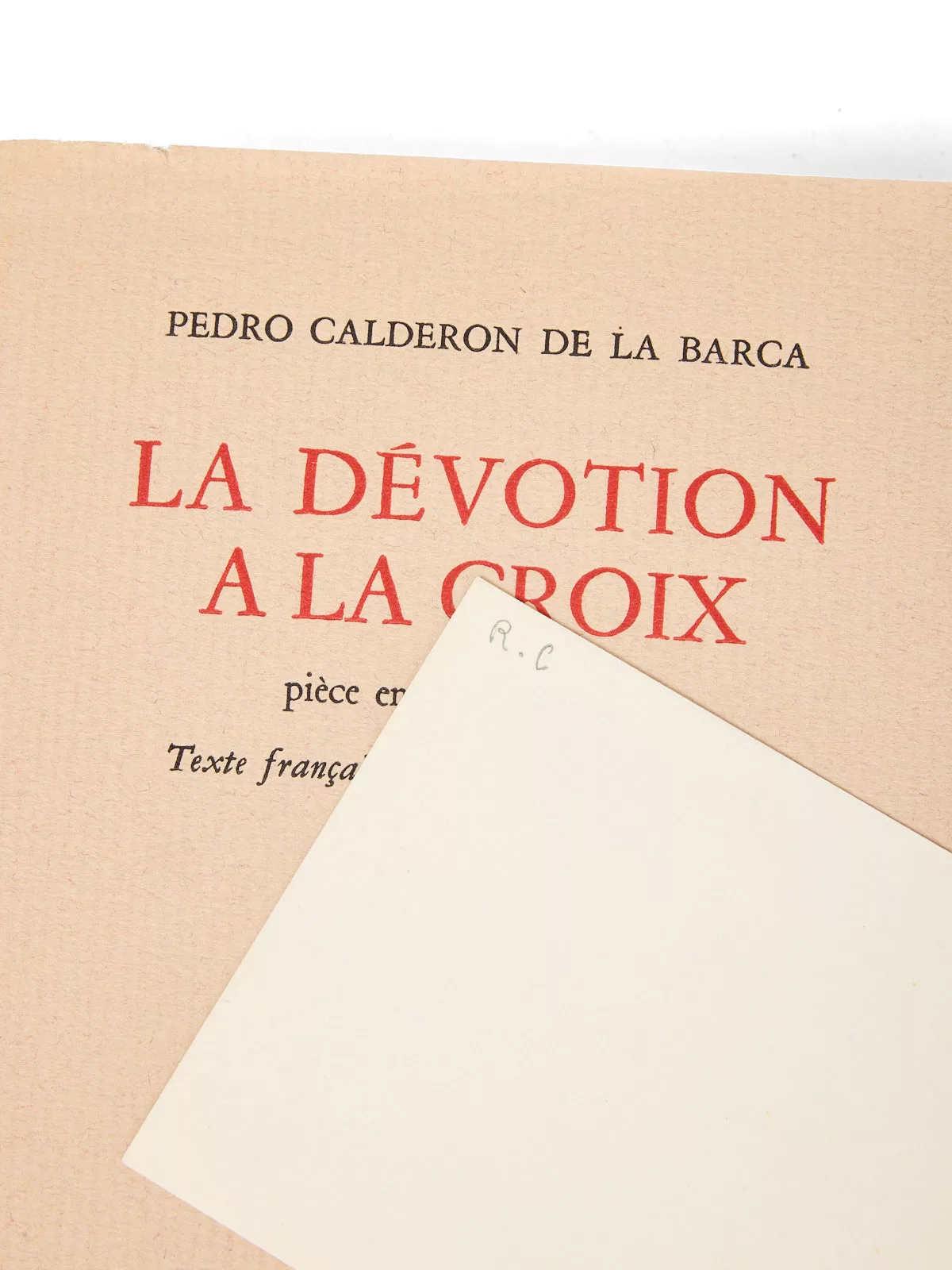La devoción de la cruz (1633) est un drame baroque de Pedro Calderón de la Barca, auteur majeur du Siècle d’or espagnol, maître des comedias de cape et d’épée comme des autos sacramentales à portée religieuse. La pièce pose des questions qui ont pu résonner profondément en Camus : comme pièce chrétienne, certains y ont même vu un indice de l’intérêt croissant de l’auteur pour le religieux. Pourtant, Camus réfutera toute interprétation hâtive : « […] Si je traduisais et mettais en scène une tragédie grecque, personne ne me demanderait si je crois en Zeus. » Ce qui l’intéresse, d’abord, c’est le théâtre – et non la profession de foi. Mais il est indéniable que cette pièce occupe une place charnière dans son oeuvre de scène. À la même époque, il envisage de réunir dans un même volume quelques oeuvres majeures du répertoire classique espagnol, songeant à faire traduire par des écrivains de renom, pour la Bibliothèque de la Pléiade, un choix de pièces de Tirso de Molina et de Calderón. Peu avant sa mort, alors qu’André Malraux oeuvrait à lui confier la direction d’un théâtre, Camus établit même une programmation. Il y inscrit notamment La Dévotion à la croix, Le Chevalier d’Olmedo, L’Alcade de Zalamea, La vie est un songe, L’Étoile de Séville – mais aussi six pièces de Corneille, une de Racine (Bérénice), et Othello, qu’il avait traduit sans jamais oser le monter : « Côté théâtre, je n’en suis encore qu’à mon baccalauréat théâtral… Shakespeare, c’est l’agrégation ! ».