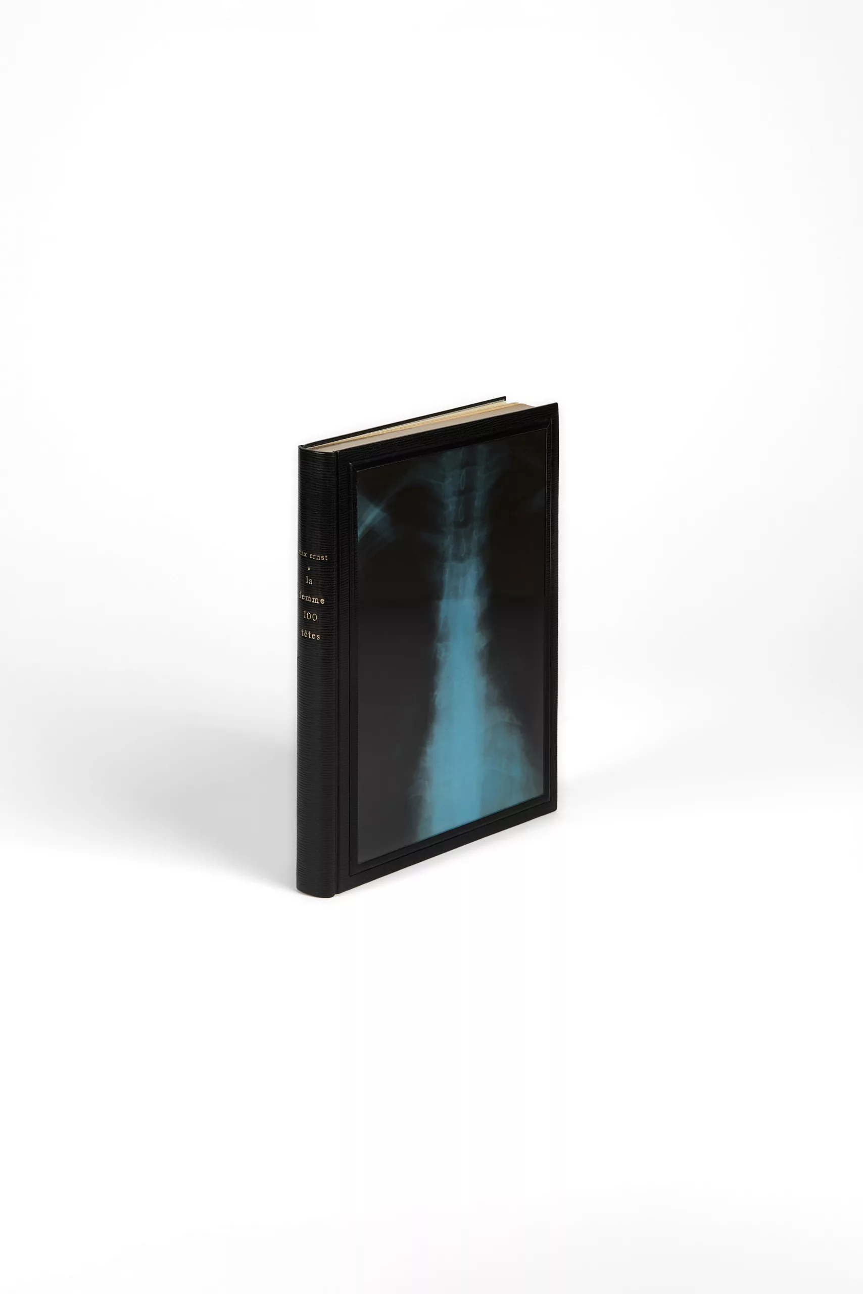 Étonnante reliure de Patrick Loutrel, qui a inséré au premier plat une radiographie d’une colonne vertébrale.