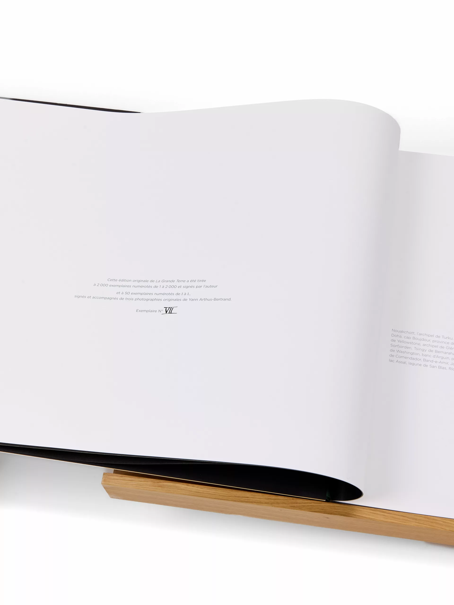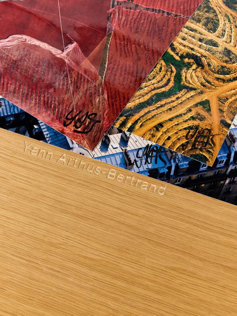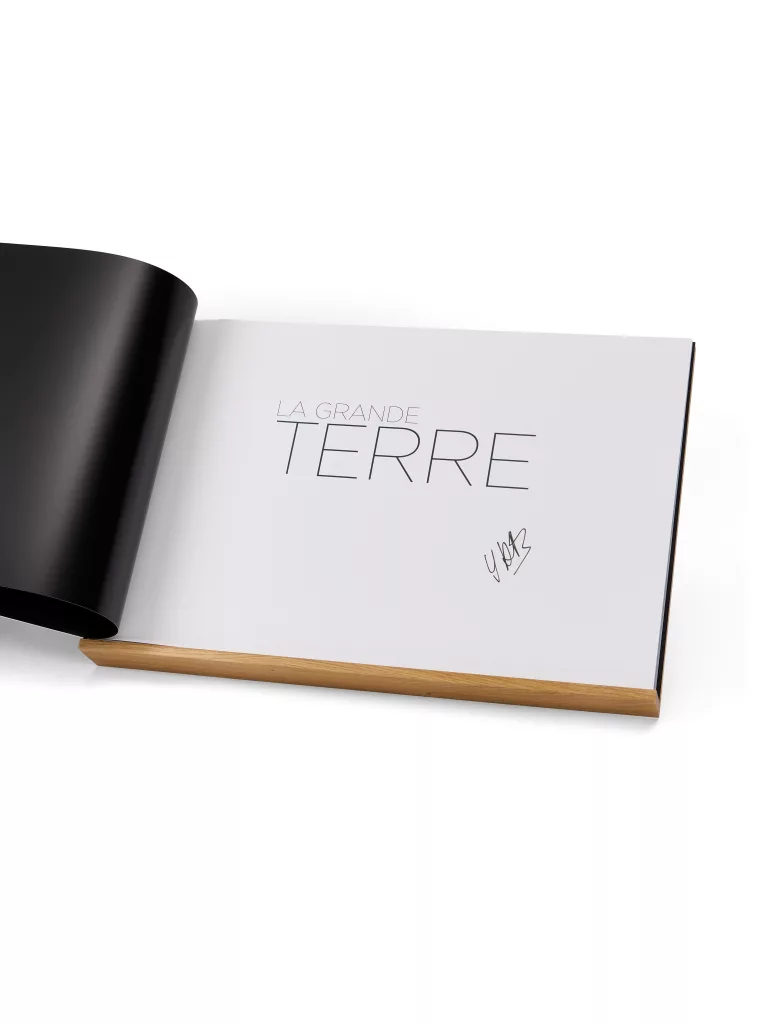 Pour fêter les quinze ans des éditions de La Martinière, Yann Arthus-Bertrand signe ici un livre hors du commun en rééditant un choix parmi les photographies de La Terre vue du ciel : 115 clichés (dont une trentaine sont inédites) sont ainsi présentés sur une seule page, sans coupure, et pour la première fois visibles dans leur intégralité. Un lutrin de présentation en bois poncé permet de les découvrir « vues d’en haut ».
