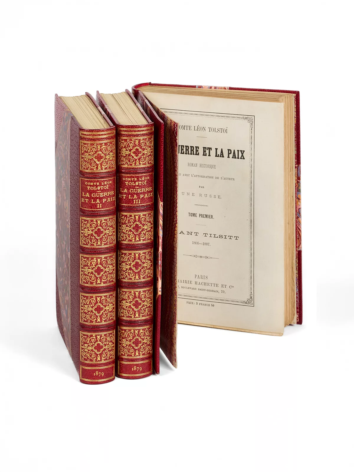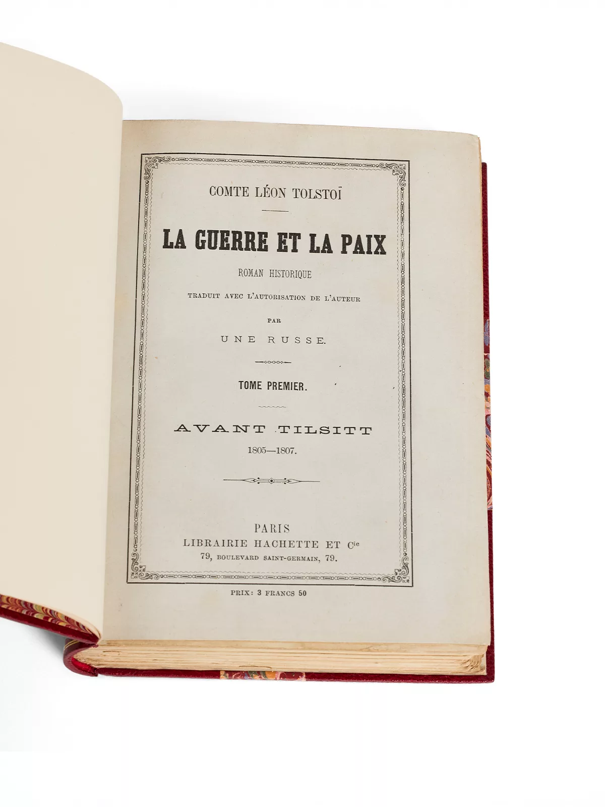 La première édition française ne sera donnée qu’en 1884, après qu’Hachette, simple diffuseur de cette première édition, ne rachète les droits. Néanmoins, l’impression russe contient des variantes et des passages non reproduits avec l’édition imprimée en France. Alphonse Daudet eut la chance de la lire dans le texte français original : « Vous devez lire La Guerre et la Paix de Léon Tolstoï. C’est un de mes livres de chevet, j’y reviens pendant les loisirs de vacance, à la campagne, chaque année. Je cherchai à me procurer ce livre rare. Il était épuisé depuis longtemps et les éditeurs hésitaient à refaire les frais de la publication d’une traduction en trois volumes ». (lettre adressée au critique Hugues le Roux, en 1882).