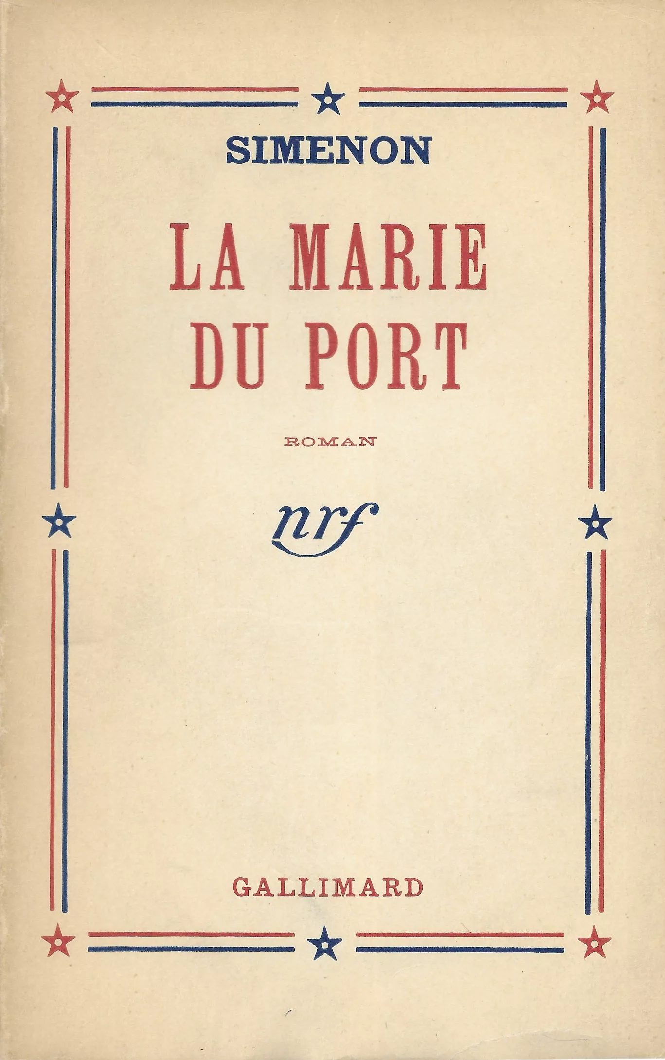 Le premier contrat passé entre Simenon et l’éditeur date du mois d’octobre 1933 : c’est au cours d’une rencontre qui restera légendaire que le romancier impose au patron de la vénérable maison de la rue Sébastien-Bottin des conditions très dures, tant en matière de rythme de publication que sur les droits proprement dits. Après la rupture avec Fayard, Simenon aborde une nouvelle étape dans son plan de carrière, en abandonnant la série des Maigret. Le Locataire sera le premier roman non sériel publié chez Gallimard, une production nouvelle, que l’auteur appelle « roman dur » et qui correspond à ses aspirations. L’entente éditoriale durera une dizaine d’années, jusqu’à la rencontre avec Sven Nielsen, qui fonde en 1945 les Presses de la Cité, où sera publié Pedigree. De la période Gallimard, il reste les plus fameux « durs » de Simenon : Malempin, la Veuve Couderc, Chez Krull, Le Bourgmestre de Furnes, et cette Marie du port.