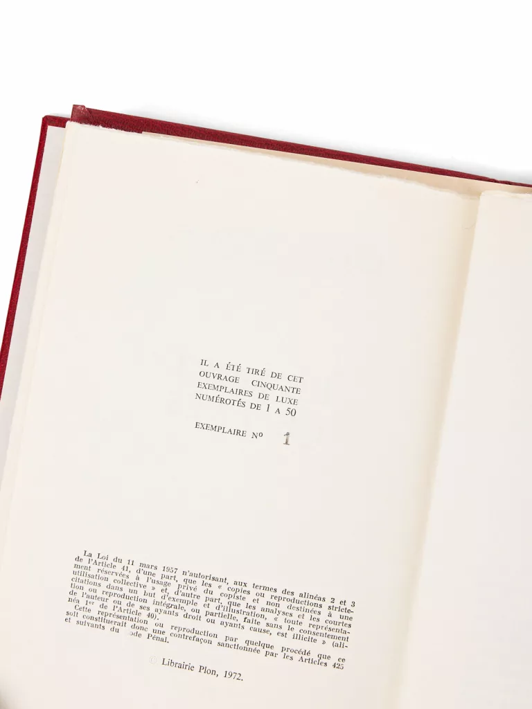 Paris, Plon, (1er septembre) 1972.