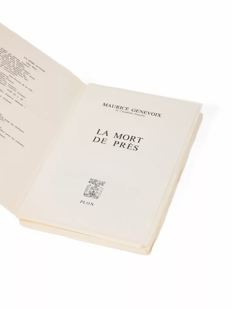 Pendant l’été 1971, alors que le troisième volume de son Bestiaire allait paraître, Genevoix rédigea en quelques semaines un petit livre : La mort de près. Ce texte, méconnu mais capital, se lit comme un écho resserré aux récits de Ceux de 14, avec l’émotion sobre et la précision sensorielle caractéristiques du style de Genevoix. Joseph Kessel lui écrira : « J’ai été très bouleversé. Le témoin, le professionnel, l’ami, tous ces personnages en moi te couvrent de louanges et te disent merci » (lettre à Genevoix, 29 juillet 1972, n° 123 de l’exposition à la BHVP, 1991).