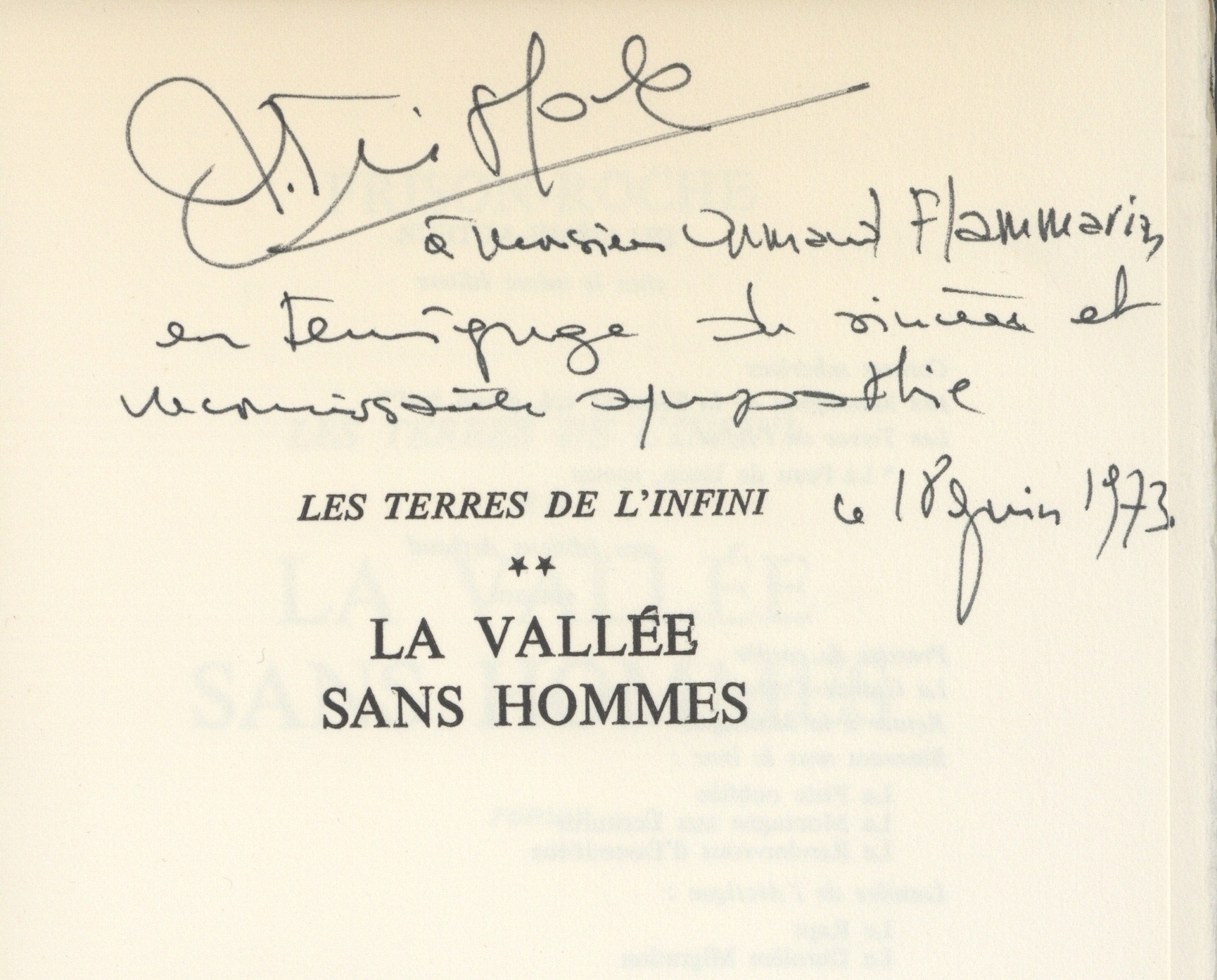 Édition originale.Un des 50 exemplaires de tête réservés à l’auteur (ex. II pour les 2 volumes, après celui réservé à Frison-Roche). Envois signés : " À Monsieur Armand Flammarion, en toute sympathie, ce 17.7.71 " ; " À Monsieur Armand Flammarion, en témoignage de sincère et reconnaissante sympathie, ce 18 juin 1973 ".