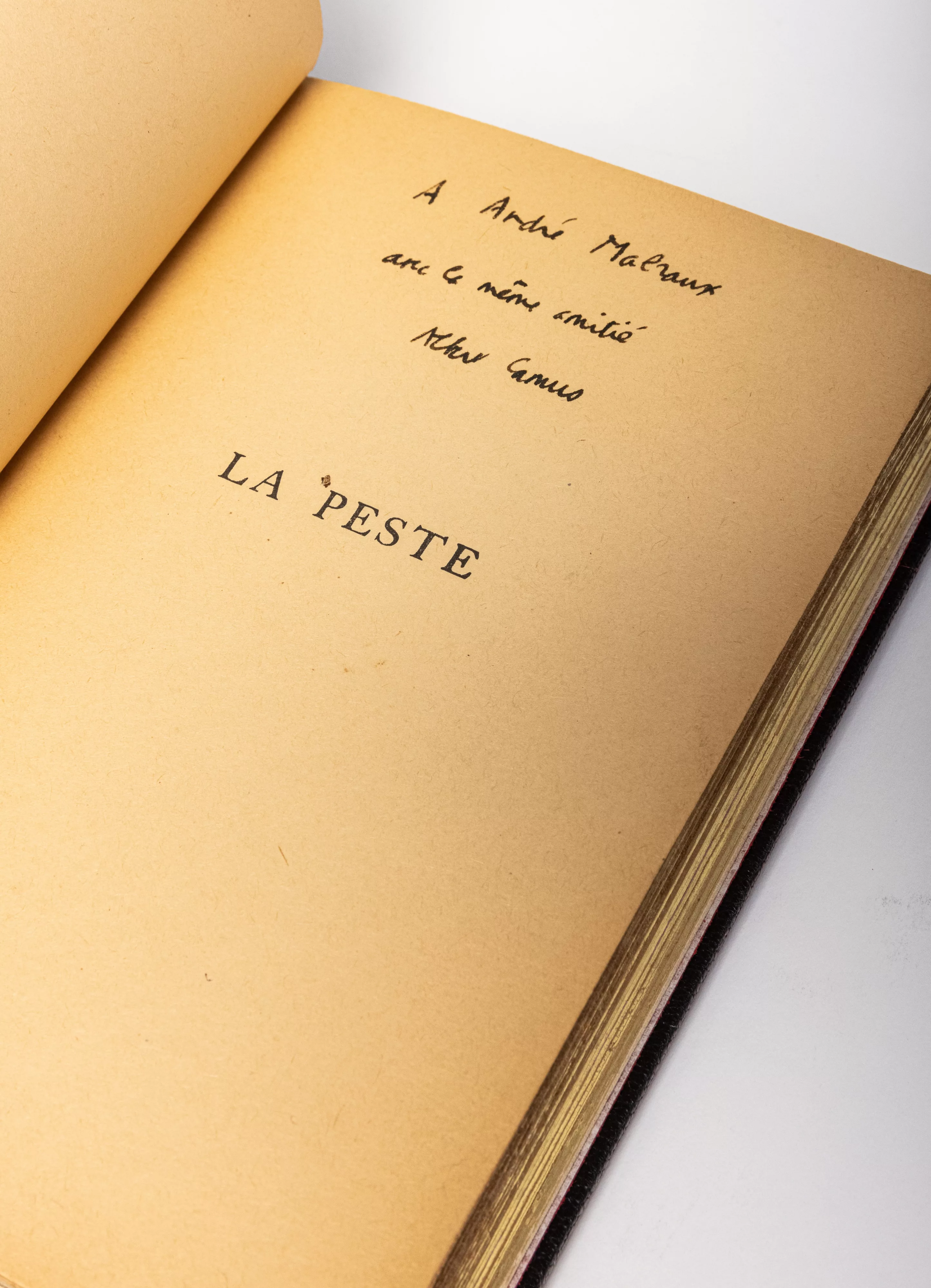Envoi signé : « à André Malraux, avec la même amitié. Albert Camus ».
