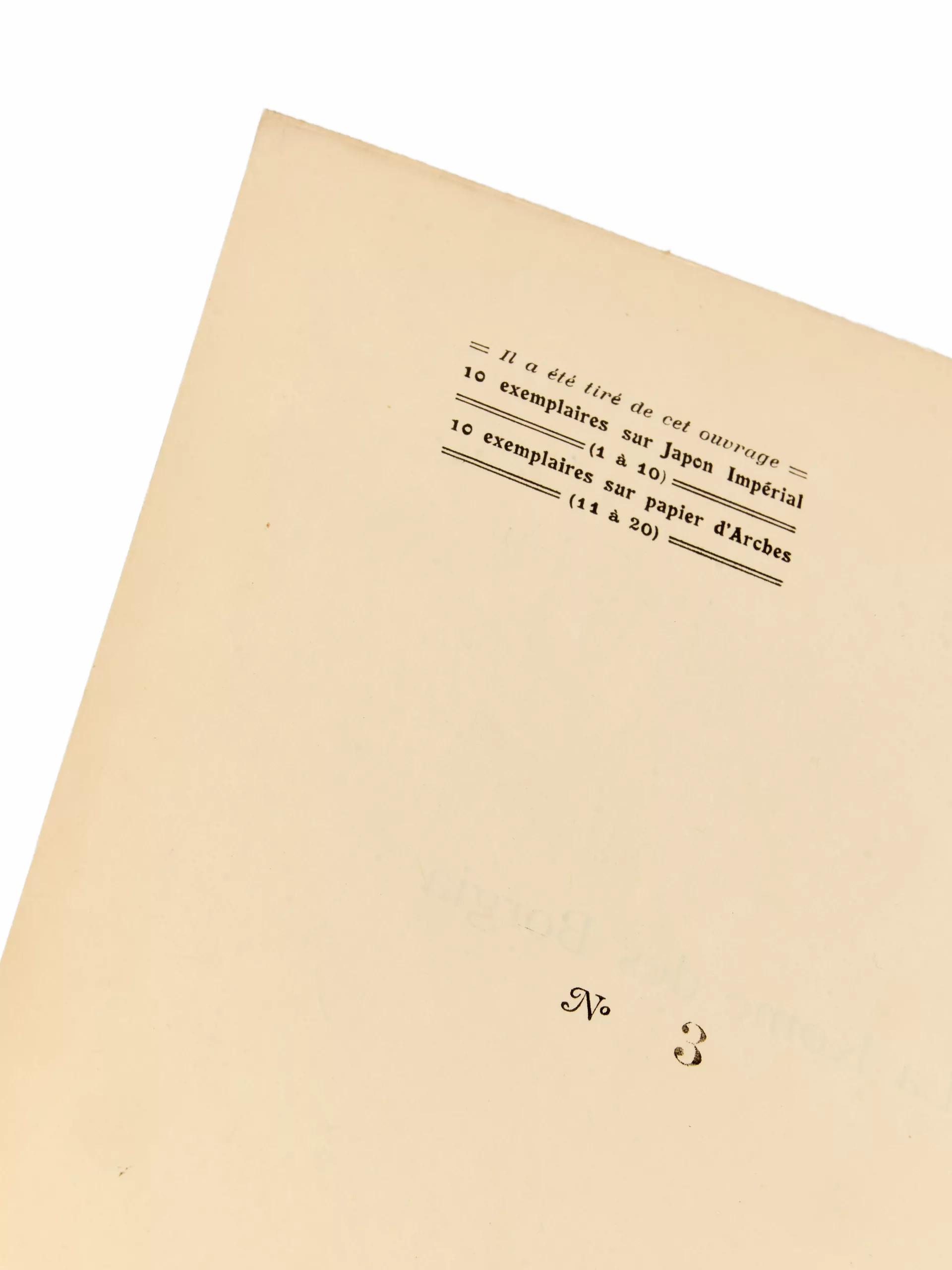 Notons que l’édition comporte deux tirages : ce premier, portant la date de 1913 et la mention de « dix illustrations hors texte », vraisemblablement tiré à peu d’exemplaires, et un second, daté de 1914, avec la mention de « huit illustrations hors texte » : c’est celui que l’on rencontre fréquemment. Les grands papiers (10 japon et 10 vergé d’Arches) sont tous du premier millésime, avec ces deux illustrations supplémentaires.