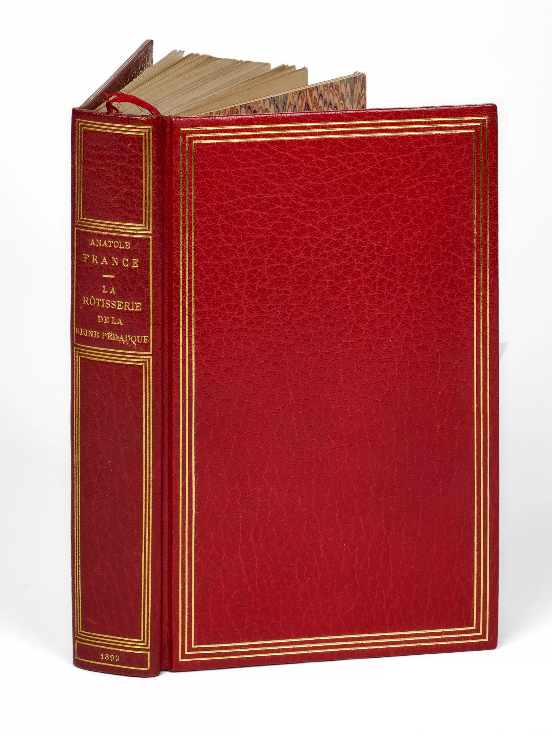Le 22 mars 1893 le texte paraît en volume chez Calmann Lévy. L’on sait la suite et son succès. Peu de titres dans la littérature de la fin du XIXe on connût un tel engouement, y compris bibliophilique. Outre les retirages nombreux et les éditions illustrées, les collectionneurs donnèrent aux plus grands ateliers cette Rotisserie qui fut admirablement et précieusement reliée. L’éditeur fit imprimée 20 japon et 40 hollande sous couverture orange – pour ne donner qu’un exemple citons celui de l’exemplaire du Bourg de Bozas sur japon relié par Meunier, assez dans le goût de l’époque.