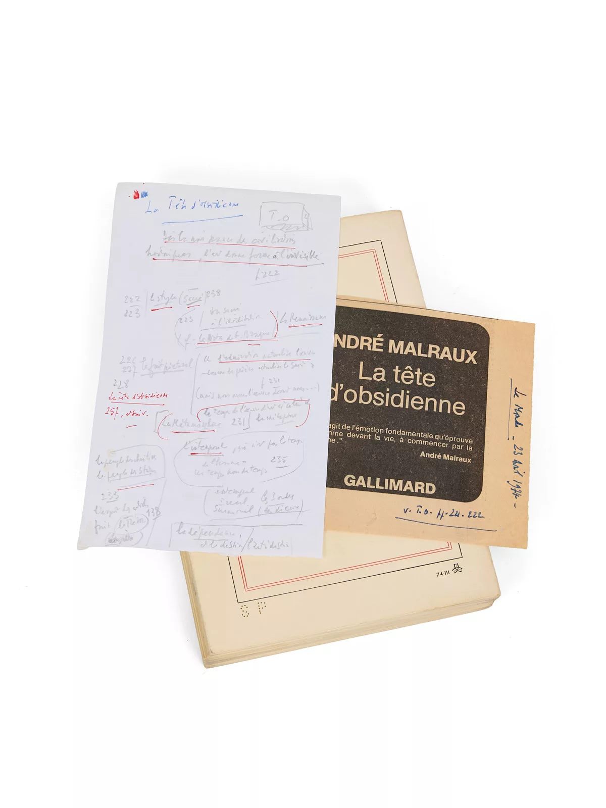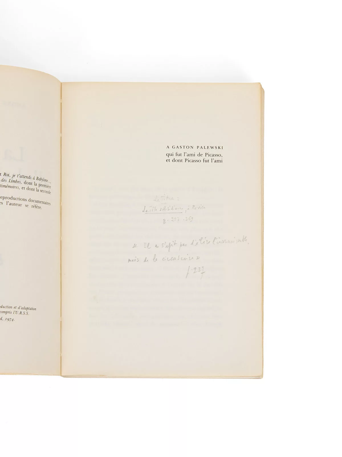 En 1973, invité par la veuve du peintre, Jacqueline Picasso, André Malraux se rend à Mougins puis à Vauvenargues choisir des toiles pour une donation à l’État de tableaux réunis par Pablo Picasso. C’est cette pérégrination dans l’atelier du peintre mais aussi dans les couloirs de la toute nouvelle fondation Maeght qui donnera lieu aux réflexions consignées dans La Tête d’obsidienne. Le texte sera en partie repris dans Le Miroir des limbes.