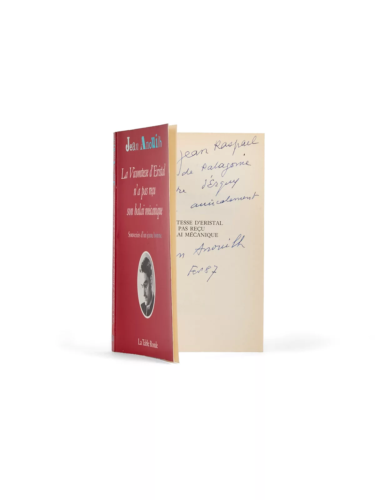 Édition originale. Envoi signé : « Pour Jean Raspail, consul de Patagonie et chantre d'Erquy. Bien amicalement, Jean Anouilh, Fév. 87 ».