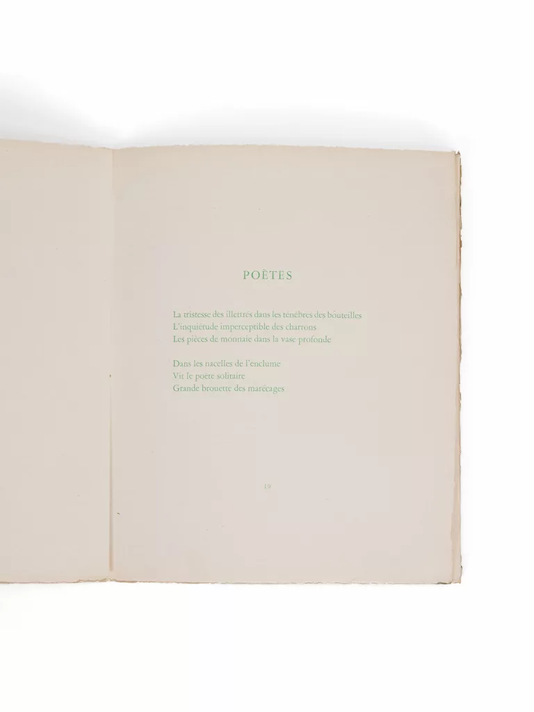 Tirage unique à 100 exemplaires sur papier Vidalon dont 5 exemplaires de tête imprimés en vert.