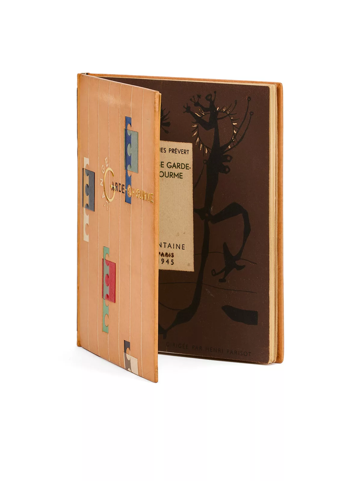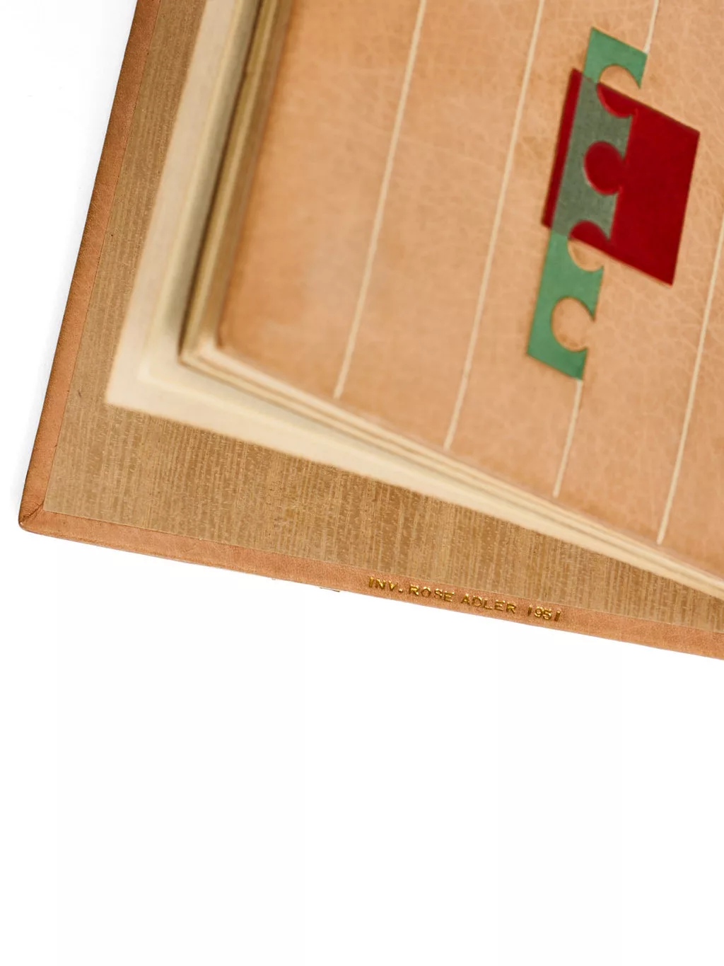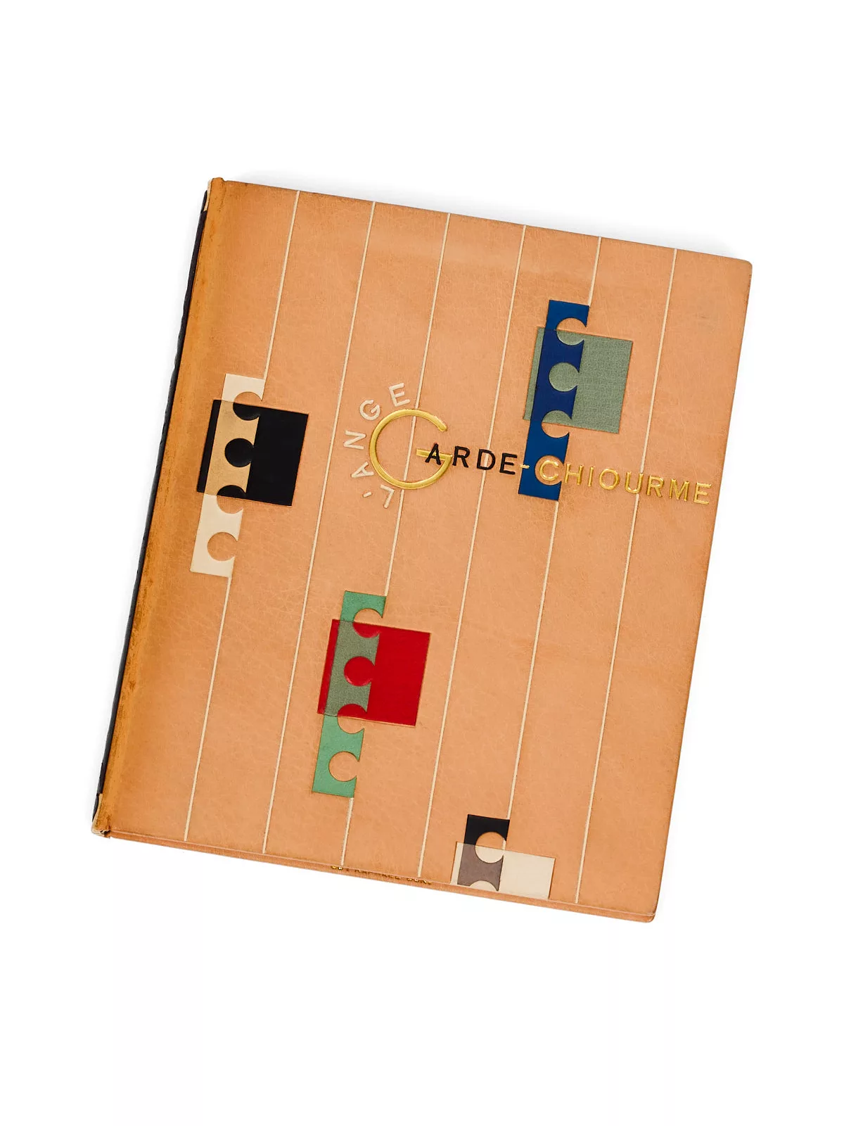 Alice Caillé datait cette reliure de 1953, à cause de l’exposition où elle fut présentée : elle date en réalité de deux ans plus tôt, signée de 1951 par Guy Raphaël, le dernier doreur avec lequel travailla Rose Adler. Ce qui en ferait, dans l’inventaire des annexes, la plus ancienne des reliures dorées par Guy Raphaël pour Rose Adler (avant Carmen, en 1952, Amitié cachetée, Je l’aime elle m’aimait et La Chanson du mal aimé en 1953). Ce dernier travaille en fait avec Rose Adler depuis 1949, mais les collaborations précédentes, peut-être plus mineures, ne sont pas signées de son nom. Alice Caillé en répertorie neuf qui le sont. « Il faut néanmoins préciser qu’il est tout à fait probable que les doreurs qu’elle a employés n’aient pas systématiquement apposé leur signature sur les reliures qu’ils ont dorées : sur les cent quarante-cinq oeuvres répertoriées dans notre catalogue, cent portent le paraphe d’un doreur, soit un peu moins de 70 %. Il se peut donc qu’en réalité, ils en aient doré plus que ce que nous avons relevé. » De fait, les reliures dorées par Guy Raphaël sont parmi les plus rares, en même temps qu’elles sont les plus abouties, Rose Adler continuant d’apposer sa touche personnelle à la fabrication de la reliure.