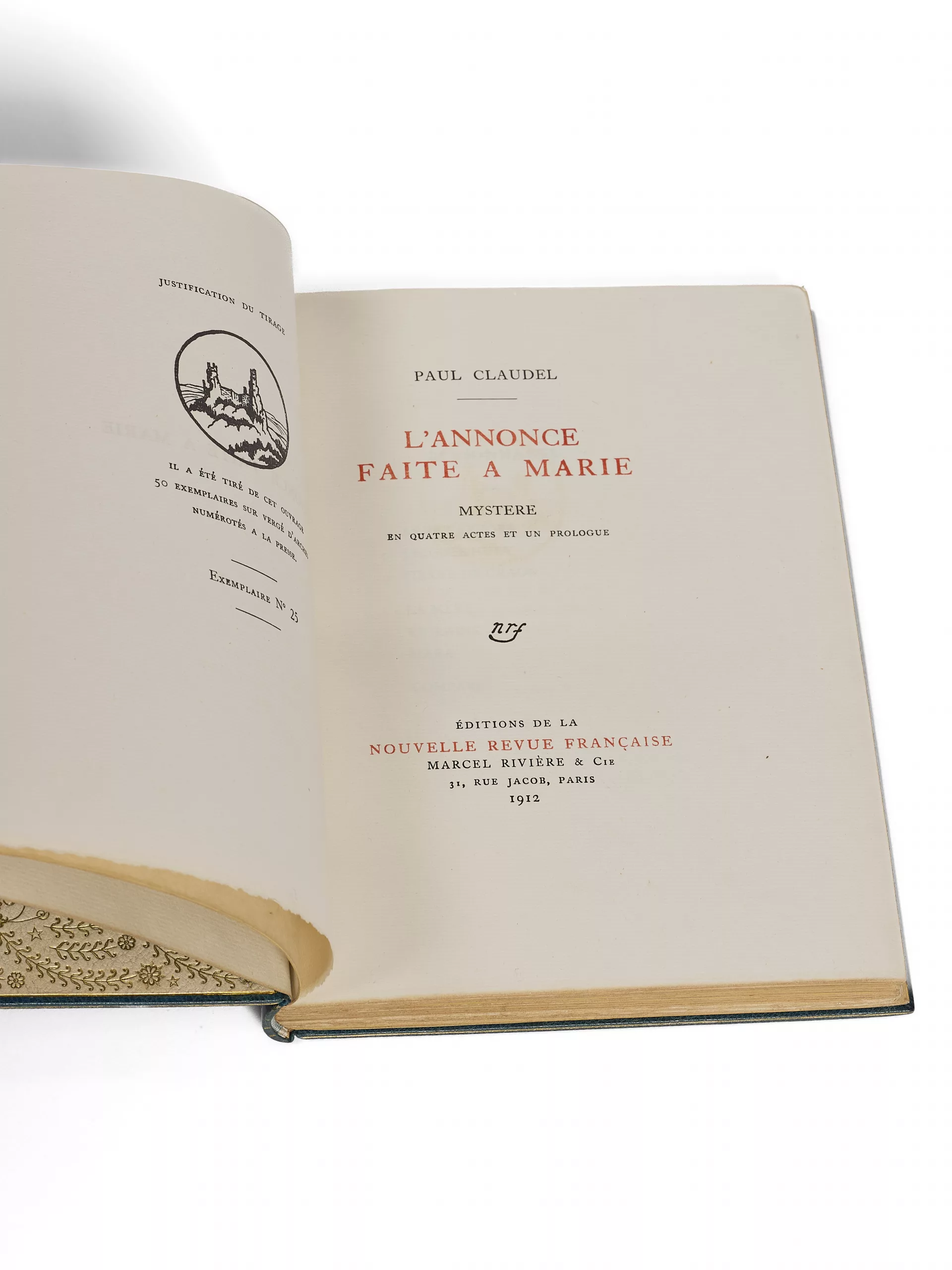 Un des 50 premiers exemplaires réimposés sur vergé d’Arches, seul grand papier (n° 25).