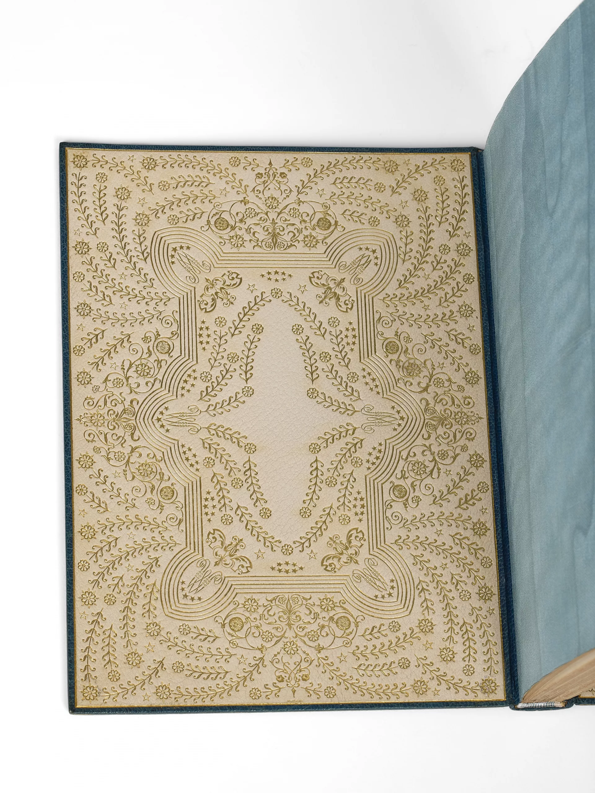 Nous pouvons émettre l’hypothèse que cette reliure fut commandée par le bibliophile Marcel de Merre dont le goût pour Claudel était prononcé. Il possédait en outre l’édition illustrée par Maurice Denis de L’Annonce faite à Marie dans une spectaculaire reliure de Paul Bonet. Si notre exemplaire n’est pas passé en vente lors de la dispersion de sa collection (Sotheby’s, 2007), il est cependant acquis que Marcel de Merre fit régulièrement travailler Huser, en usant de ce monogramme pour les pièces de grande qualité.