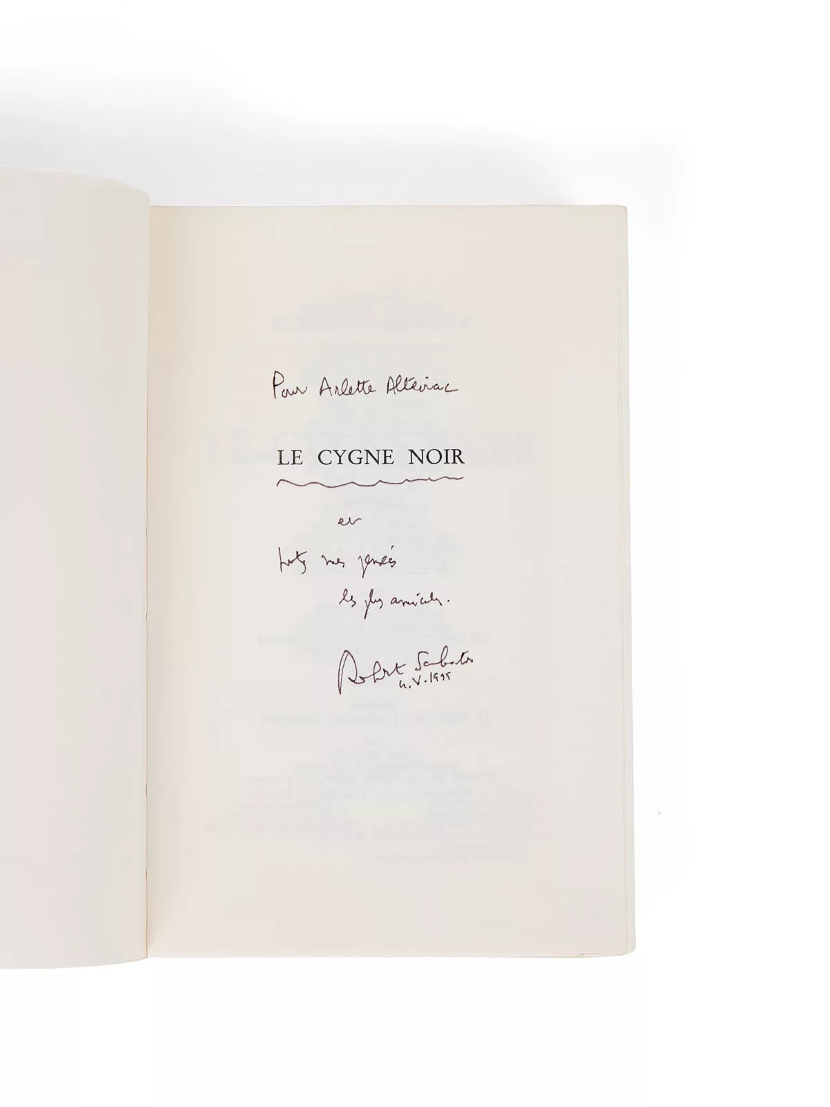 Envoi signé: « Pour Arlette Alteirac [Le Cygne noir] et toutes mes pensées les plus amicales. Robert Sabatier 4.V.1995 ».