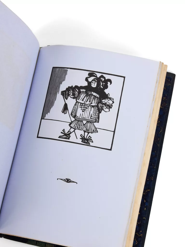 Initialement publiée en 1913, cette édition doit beaucoup à l’art de Carlègle (Charles-Émile Égli, 1877-1937), maître de la gravure sur bois et de l’illustration de luxe après 1918 (L’Assiette au beurre, Le Rire, La Vie parisienne), dont les planches firent sa renommée auprès des bibliophiles.