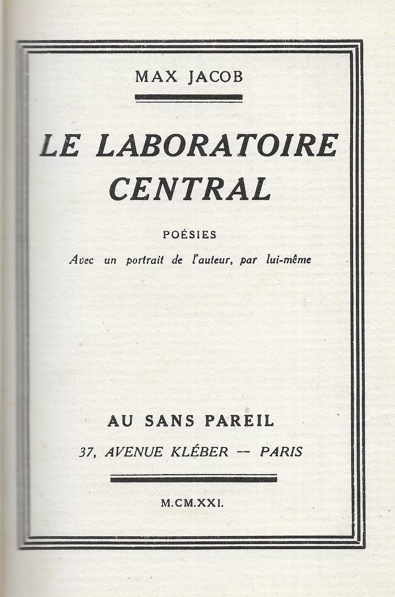 L’une des premières productions du Sans Pareil qui tente, avec les livres de Paul Morand et Blaise Cendrars, de s’éloigner du continent du surréalisme naissant. Cette volonté d’ouverture littéraire de la part de René Hilsum n’étant pas entendue dans un sens strictement commercial, Le Laboratoire central n’obtiendra en librairie qu’un résultat relatif. Ce qui fera dire à son auteur : « Le Laboratoire n’a pas grand succès et les témoignages de sympathie devant ce décès de ma poésie me font plaisir ».