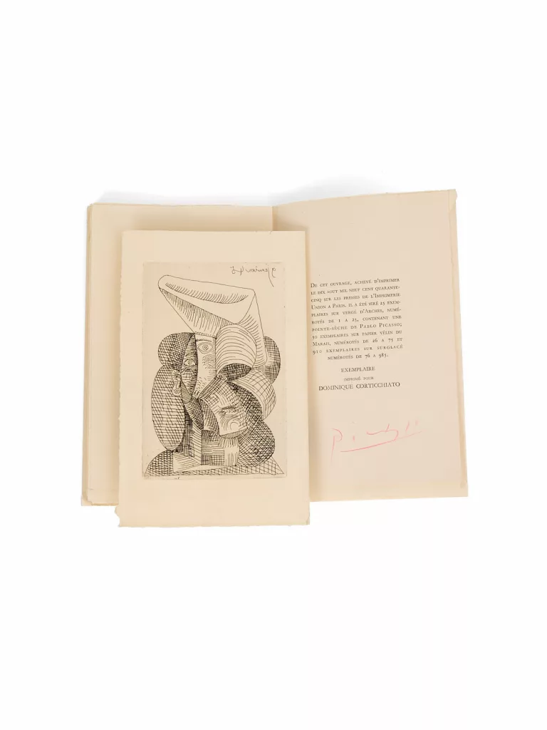 Tiré à 985 ex. numérotés dont seuls les 25 de tête contiennent une eau-forte volante de Pablo Picasso, avec sa signature à la justification.