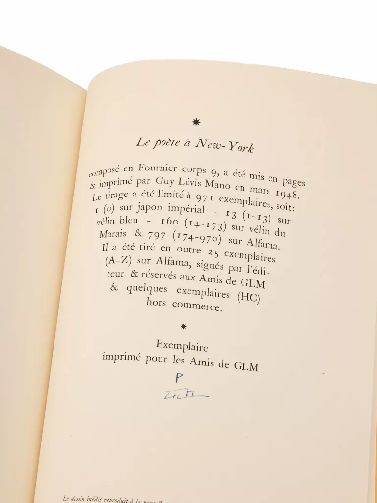 Un des 25 exemplaires sur Alfama justifiés et signés par l'éditeur, réservés aux Amis de GLM.