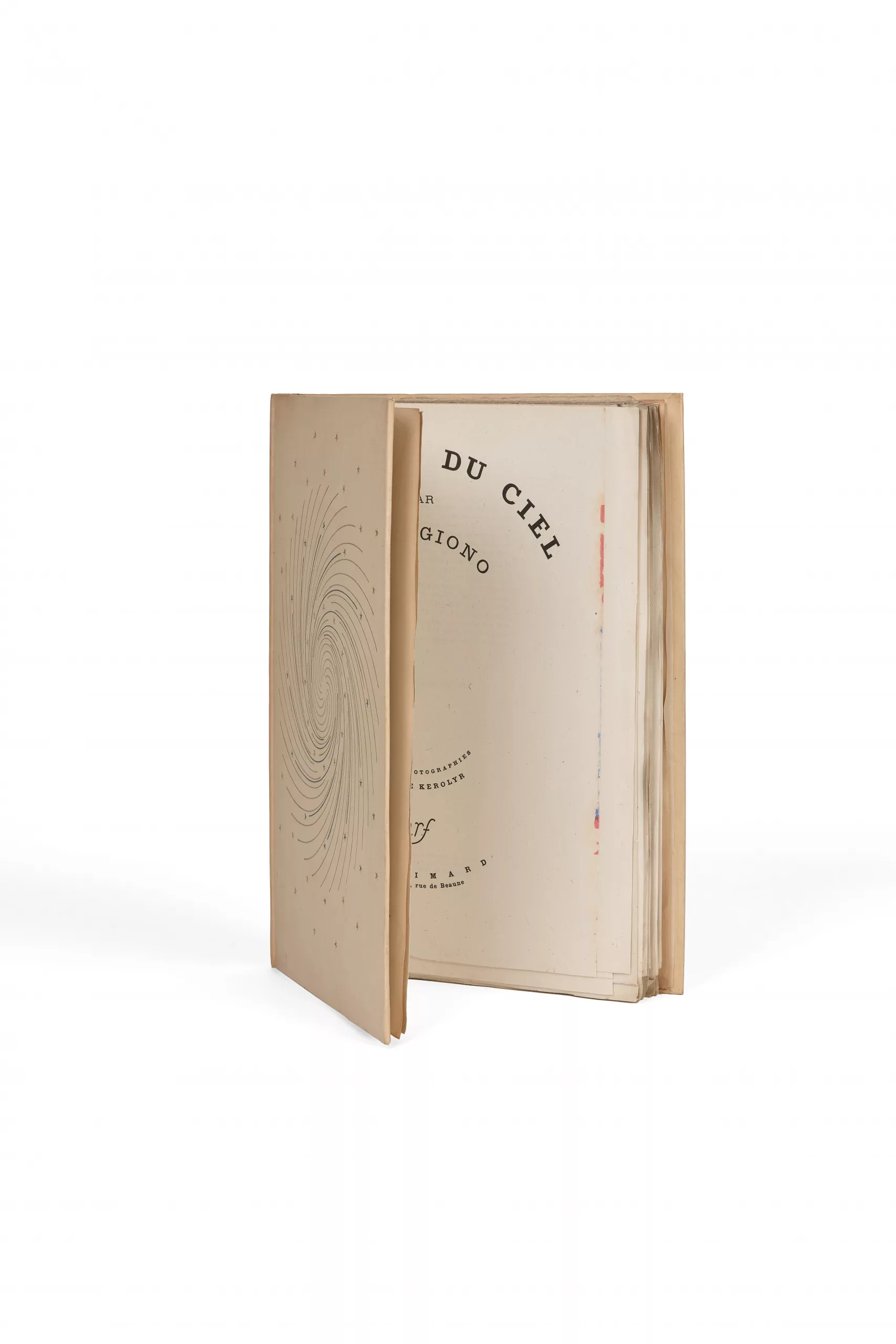 Précieux exemplaire, unique, édité dans une reliure composée sur le modèle des futurs cartonnages NRF décorés par Paul Bonet. Nous avons par le passé rencontré deux autres ouvrages seulement reliés sur ce type de maquette, véritables « incunables » des futurs cartonnages : un sur L’Espoir de Malraux (exemplaire sur chine) ; un autre sur une série d’À la Recherche du temps perdu (exemplaire sur chine également). Il est probable que le commanditaire soit Raymond Gallimard : les deux exemplaires cités portaient, sur les gardes, les initiales « R.G. » au crayon, et l’exemplaire Malraux une lettre de ce dernier adressée à Raymond Gallimard.