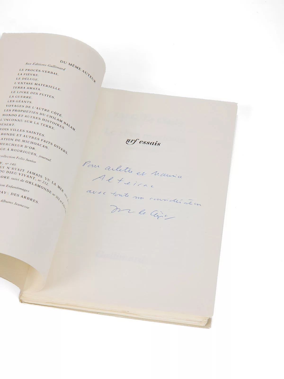 Édition originale. Un des 41 exemplaires sur vélin pur fil de Rives (n° 43). Envoi signé : « Pour Arlette et Maurice Alteirac avec toute ma considération, M. le Clezio ».