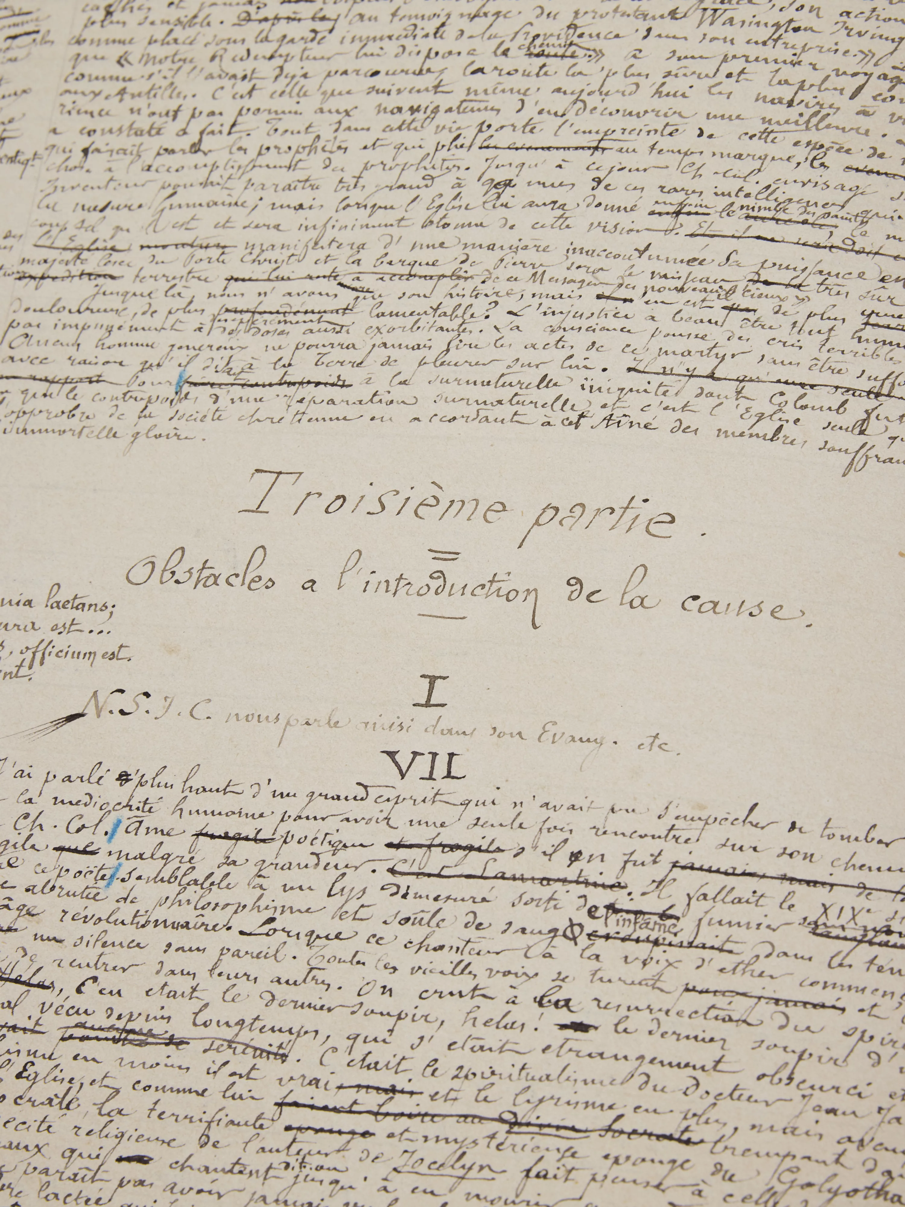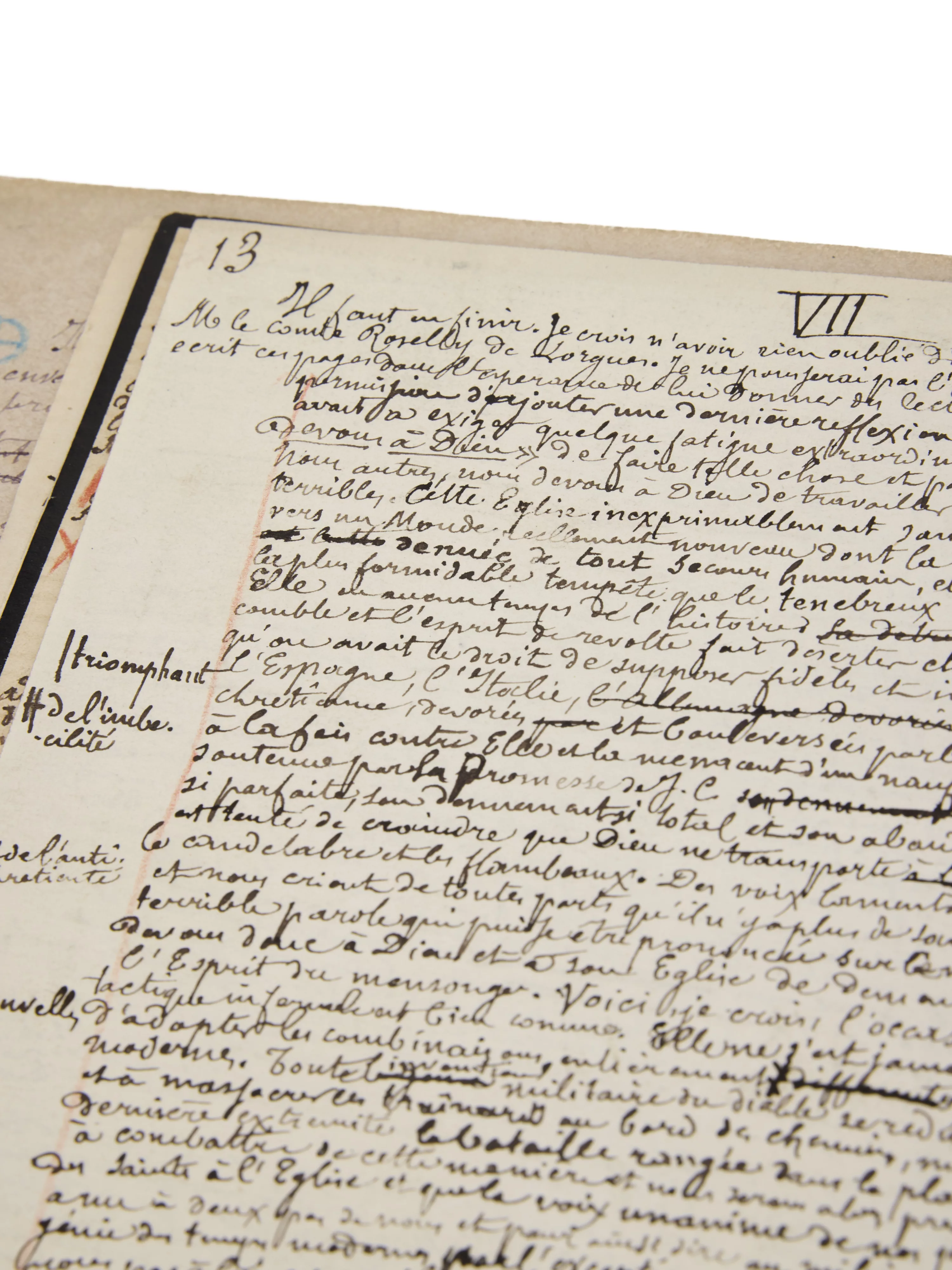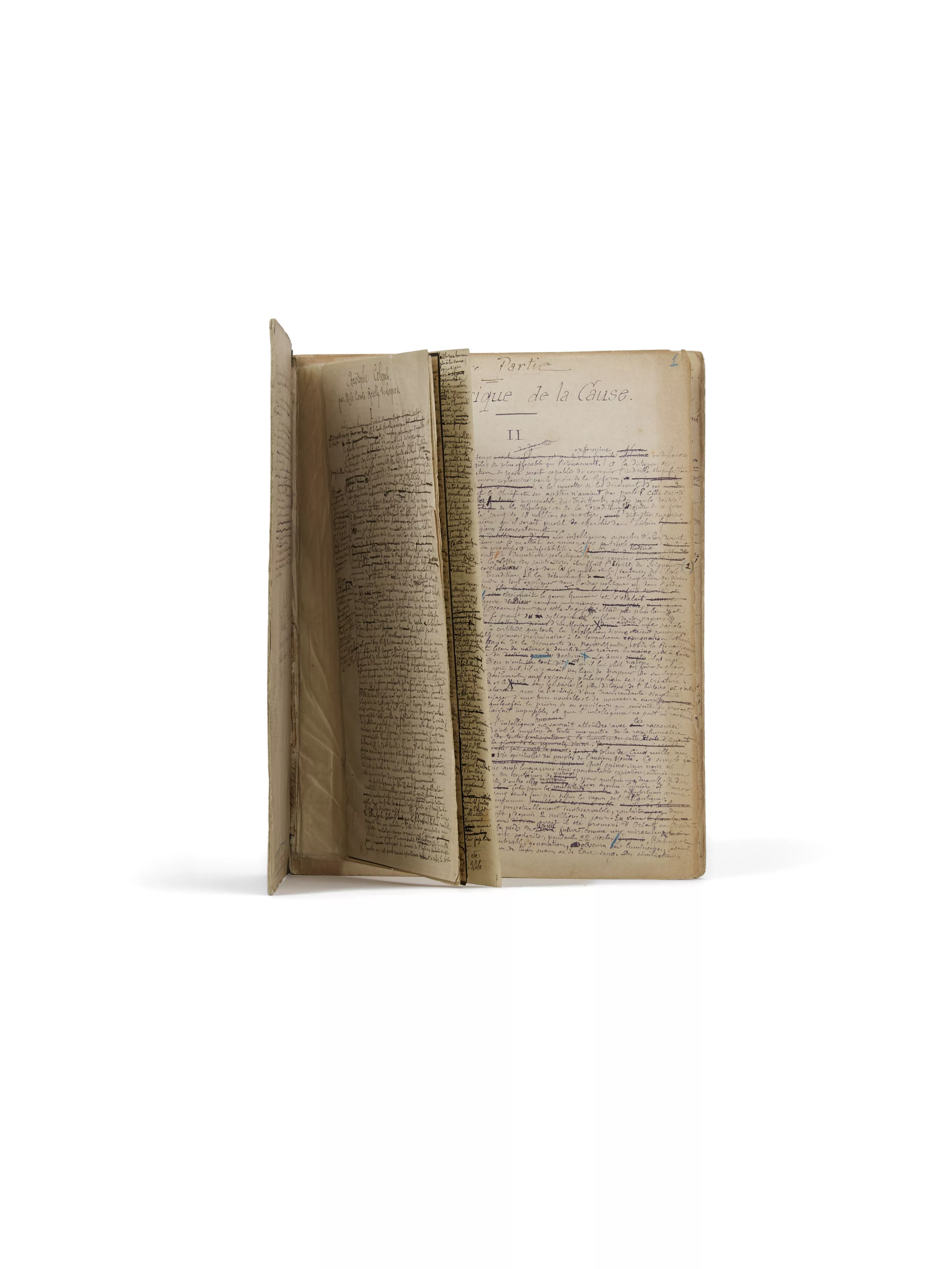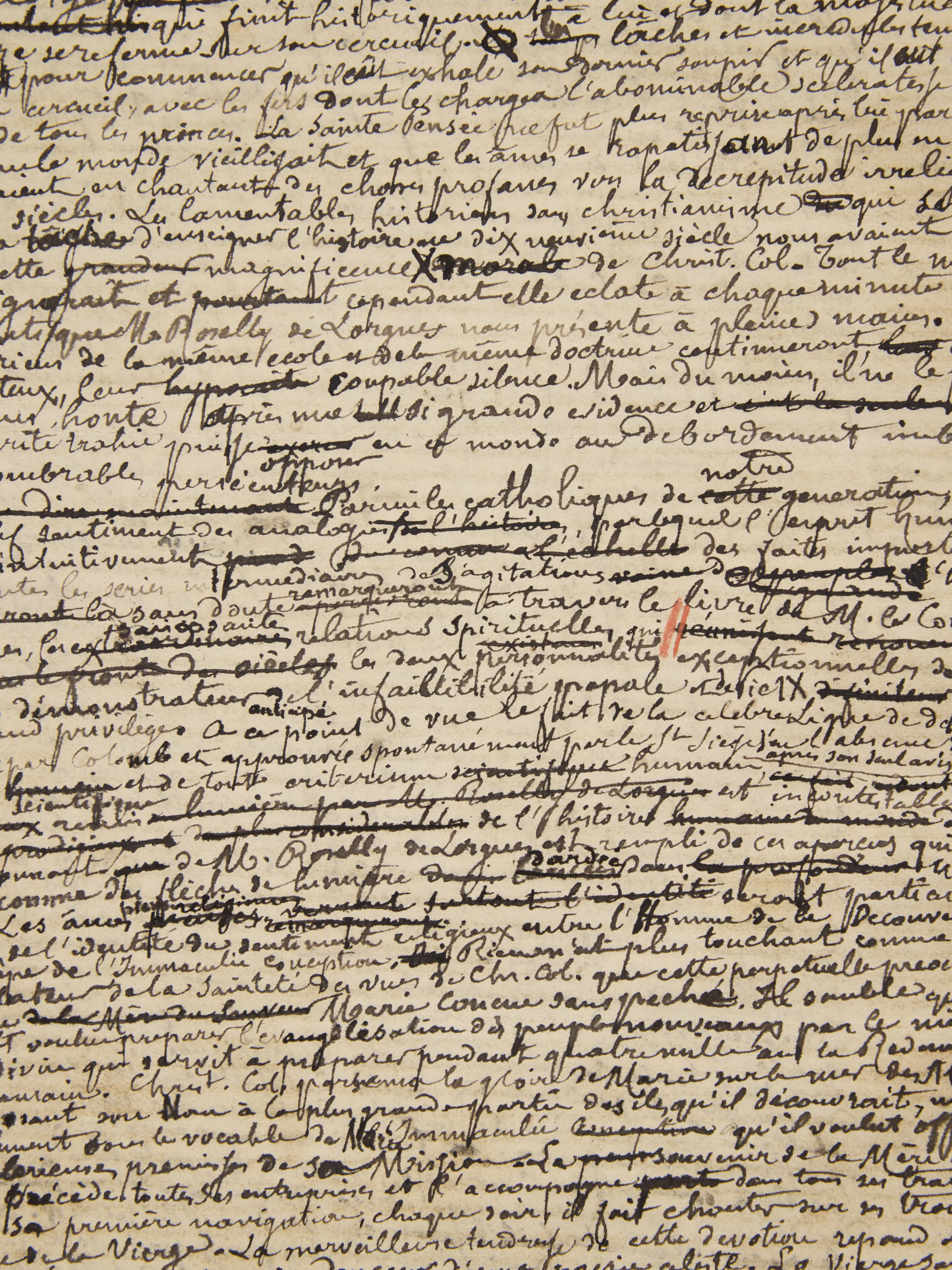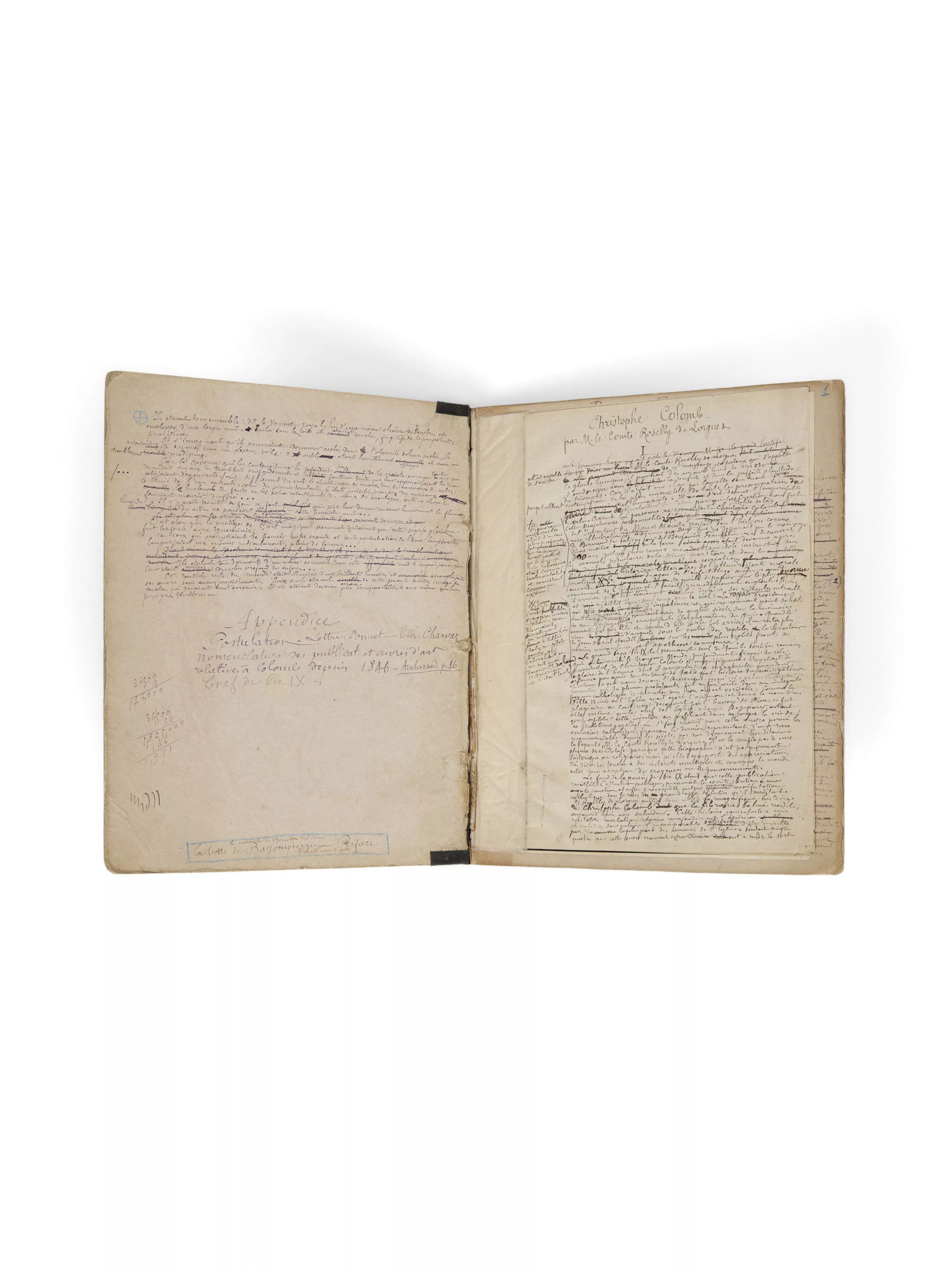 Ainsi, les 11 feuillets montés en tête (de format plus petit que ceux du cahier) par Bloy sans doute sont d’un premier état de travail et sous un titre qui ne réapparaîtra plus dans les versions successives : « Christophe Colomb par M. le Comte Roselly de Lorgues ». Ils ont été margés par Bloy lui-même, lui permettant ajouts et corrections.