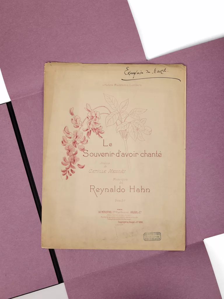 Cette dédicace fait partie des rares missives envoyées par Hahn à Proust — et l’on n’en connaît que deux plus anciennes (sur Les Bretonnes, en 1896, et Théone, en 1897).