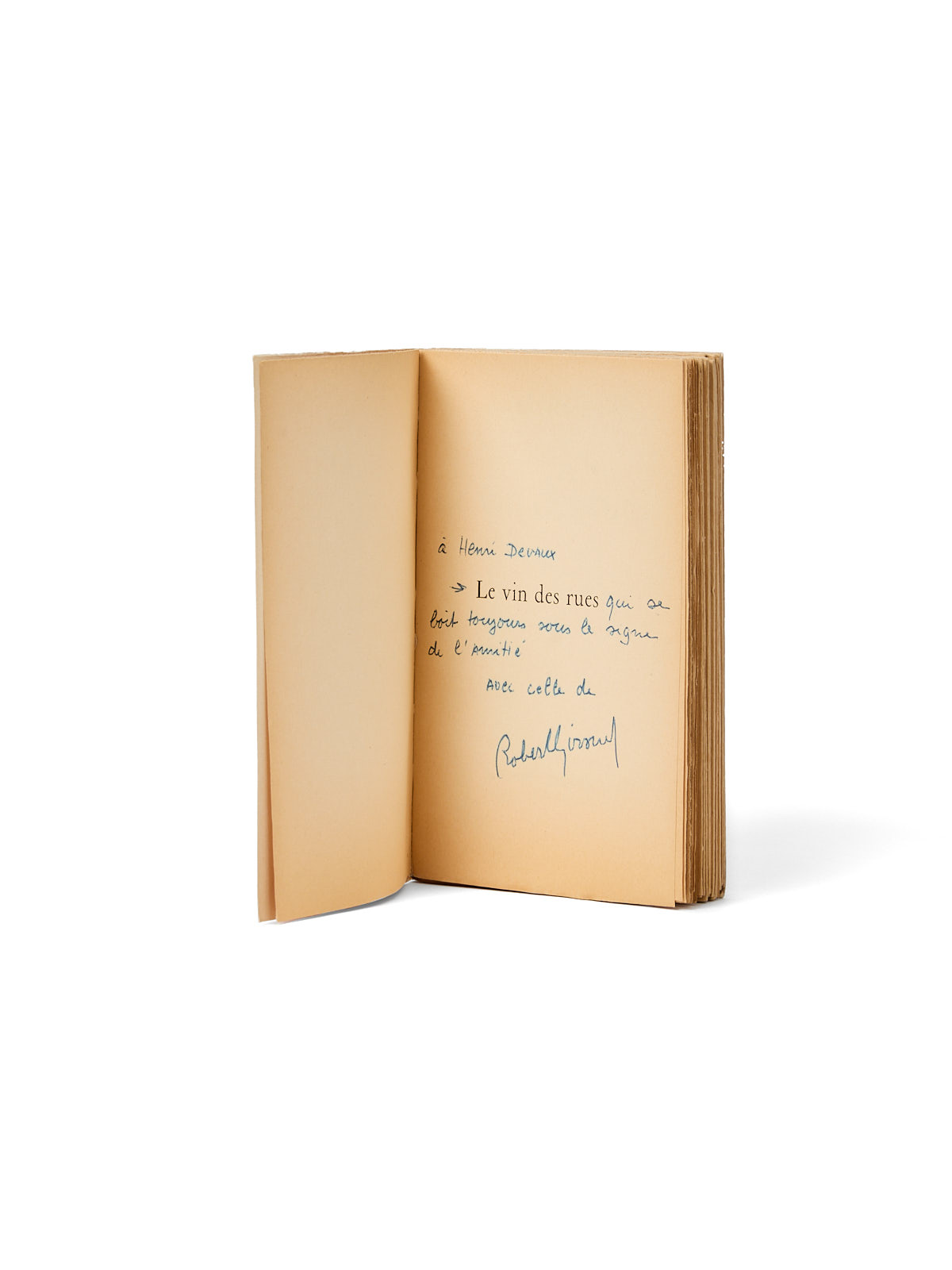 Édition originale. Un des exemplaires poinçonnés du service de presse. Envoi signé : « à Henri Devaux [Le Vin des rues] qui se boit toujours sous le signe de l'amitié, avec celle de Robert Giraud ». Bandeau éditeur conservé.
