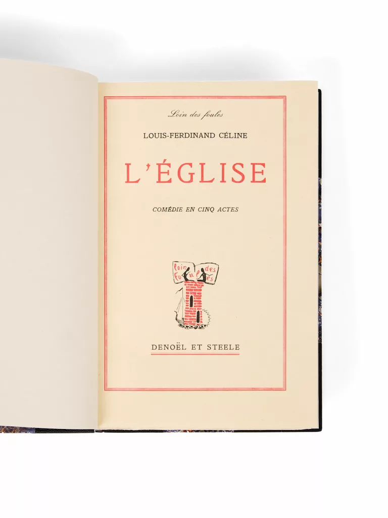 Unique incursion de Céline dans le théâtre, L’Église rédigée en 1926 met déjà en scène le docteur Bardamu, futur héros du Voyage au bout de la nuit (1932). On y retrouve les grands motifs céliniens : l’Afrique coloniale, l’Amérique, Genève et sa Société des Nations, la banlieue parisienne.