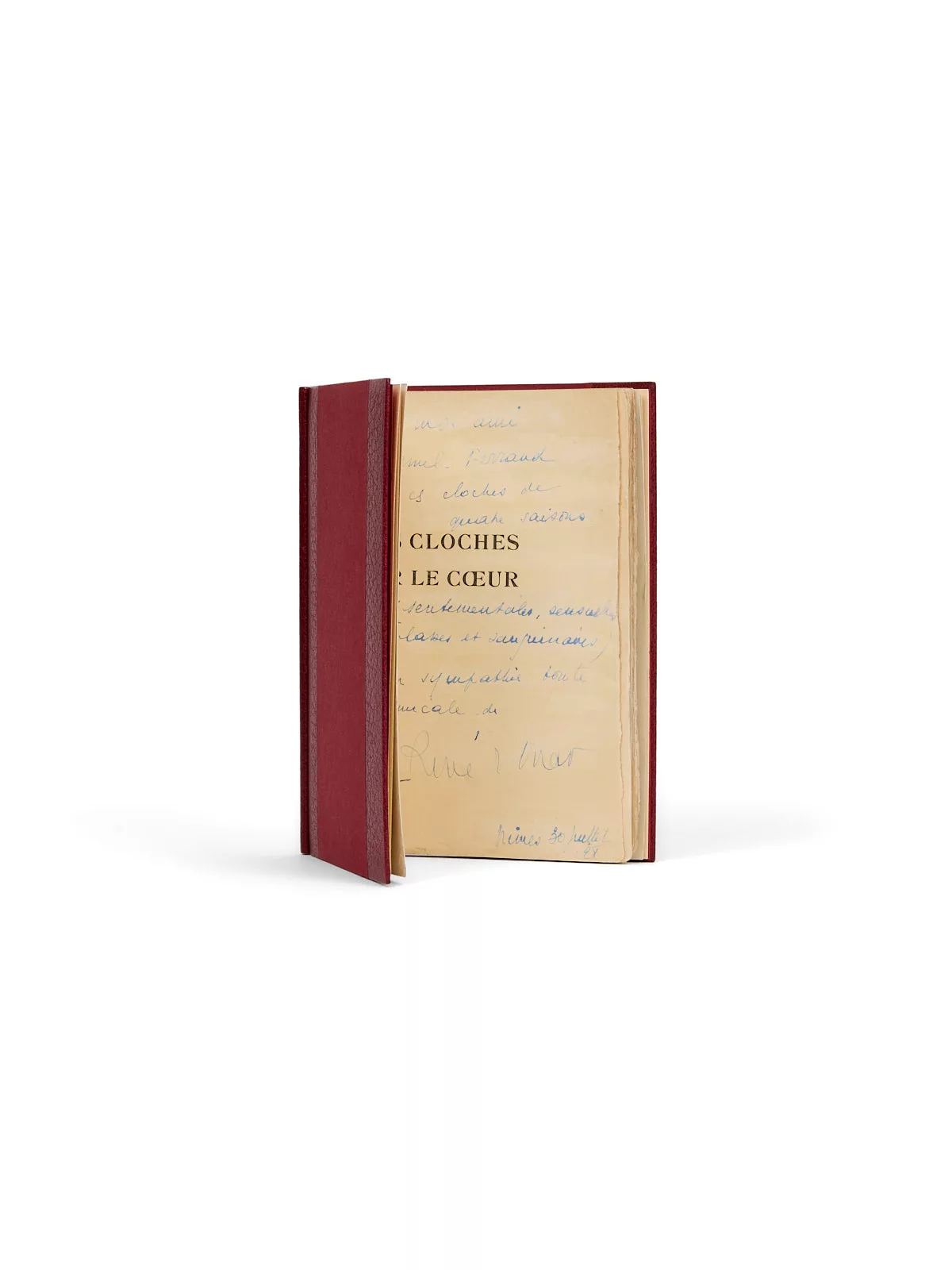 Le poète, depuis Nîmes où il effectue, depuis 1927 et pour dix-huit mois, son service militaire dans le régiment d’artillerie, s’attelle à la composition du recueil. Il termine sa mise en forme au printemps 1927 ; l’édition, à compte d’auteur, est assurée par une petite maison d’édition parisienne, qui publie une revue littéraire, Le Rouge et le Noir à laquelle Char a collaboré régulièrement entre 1925 et 1927 – l’un des poèmes des Cloches « Ravage de la Lune » y a d’ailleurs déjà paru et Char dédiera le poème « Sonatine » (ici avec son manuscrit) à son directeur Henri Lamblin.