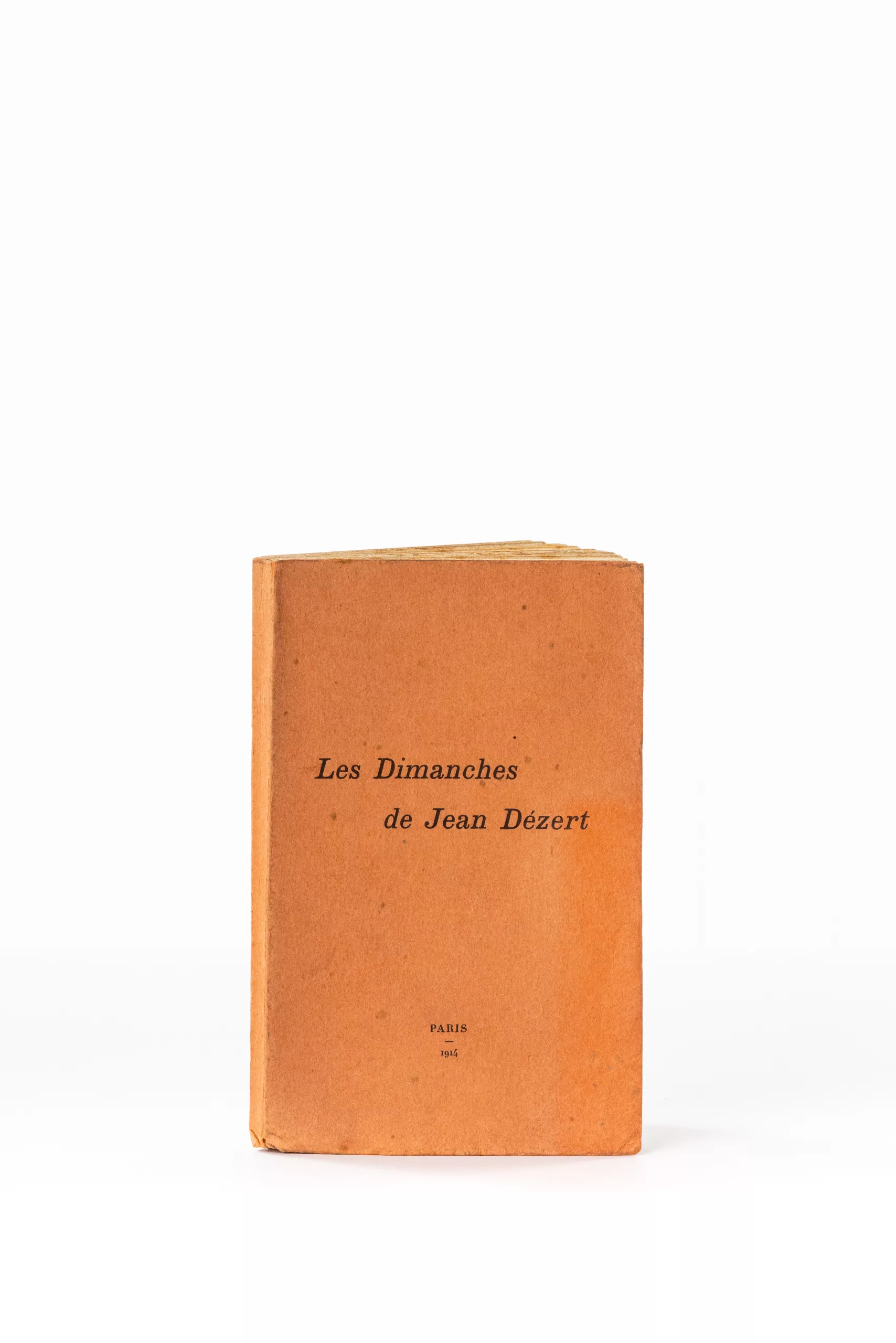 Roman unique et foudroyant, conçu dès 1911 (« Mon personnage est définitivement employé de ministère… Il s’ennuie mortellement par faute d’imagination… Je n’ai même pas la peine d’inventer »), fantaisie à double sens d’une modernité sidérante où l’ennui méthodique, l’humour sec et la langue d’une pureté classique mènent Jean Dézert à planifier jusqu’à son suicide « un dimanche afin de ne pas manquer son bureau » ; Jean Le Cardonnel saluera, dans l’Anthologie des écrivains morts à la guerre (1926), « ce petit roman, écrit dans une admirable langue, d’un pessimisme amer et d’une ironie hautaine ». Premier et dernier livre d’un jeune sergent tombé sur le front de l’Aisne en novembre 1914, nuque brisée par le souffle d’un Minenwerfer au Chemin des Dames (Verneuil), il est devenu l’une des oeuvres-phares de la littérature de la perte et de la vie ordinaire