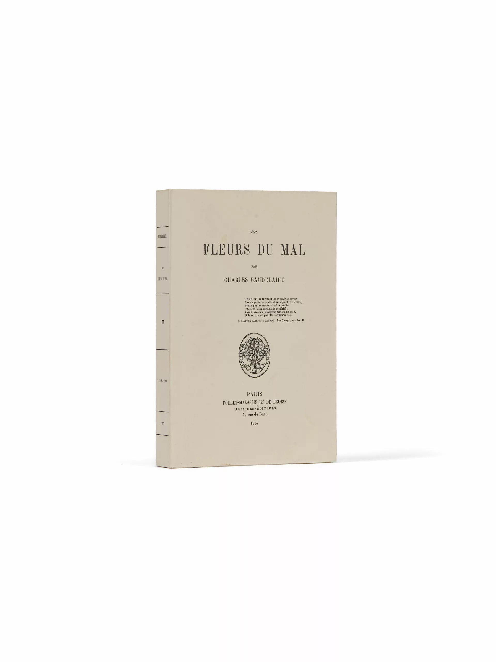 La présente édition « est le fac-similé réalisé par Normandie Roto Impression s.a.s., Maîtres Imprimeurs à Lonrai (Communauté Urbaine d’Alençon) en juin 2007 à partir de l’exemplaire de la bibliothèque d’Alençon », à l’occasion des 150 ans de la parution des Fleurs du Mal : elle reprend les caractéristiques des exemplaires du premier tirage et permet de découvrir – à moindre frais – le volume dans sa condition d’origine.