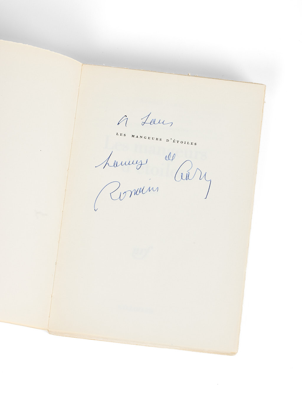 Envoi signé : « à tous [Les mangeurs d'étoiles], hommage de Romain Gary ».