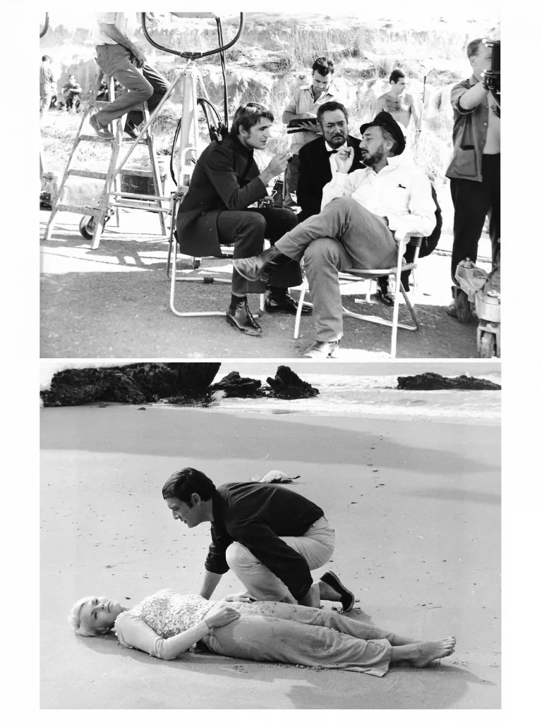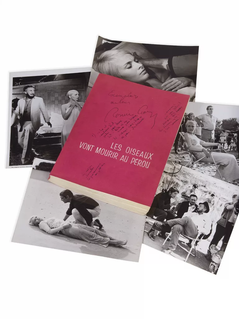 Sont joints plusieurs photographies en tirage d’époque, sur le tournage : Gary et Seberg, entre deux prises (cliché de plateau, Universal Pictures) ; Gary, Brasseur et Ronet, sur la plage à Huelva ; Maurice Ronet et Jean Seberg, pour plusieurs scènes sur la page ; plusieurs portraits de plateau de Jean Seberg, Maurice Ronet, Jean-Pierre Kalfon et Pierre Brasseur ensemble ; Gary et Danielle Darrieux… Une photographie montre Jean Seberg, au repos entre deux scènes, à Huelva : on y aperçoit clairement la boîte des cigares Montecristo posée sur la veste de Gary, et surtout le script de ce dernier – celui proposé ici et qui l’accompagna tout au long de ces deux mois de tournage.