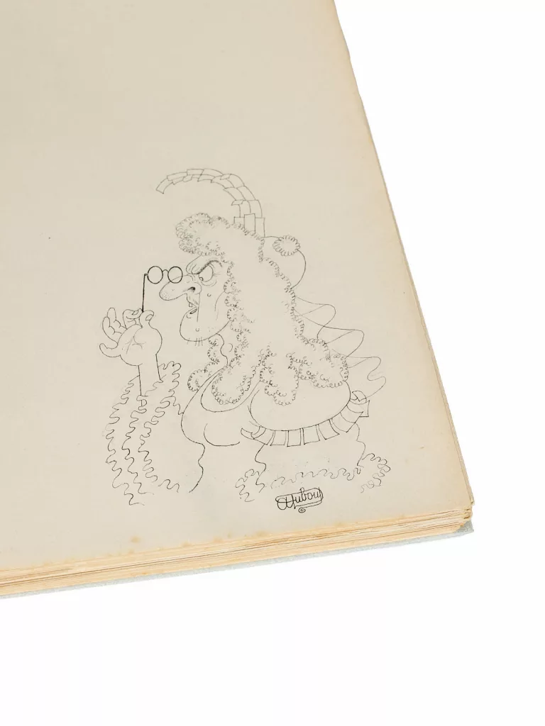 Un des 600 exemplaires sur vélin ivorine (n° 284), celui-ci enrichi d'un dessin original à l'encre de chine, signé : variante du portrait de Madame La Comtesse reproduit p. 38.