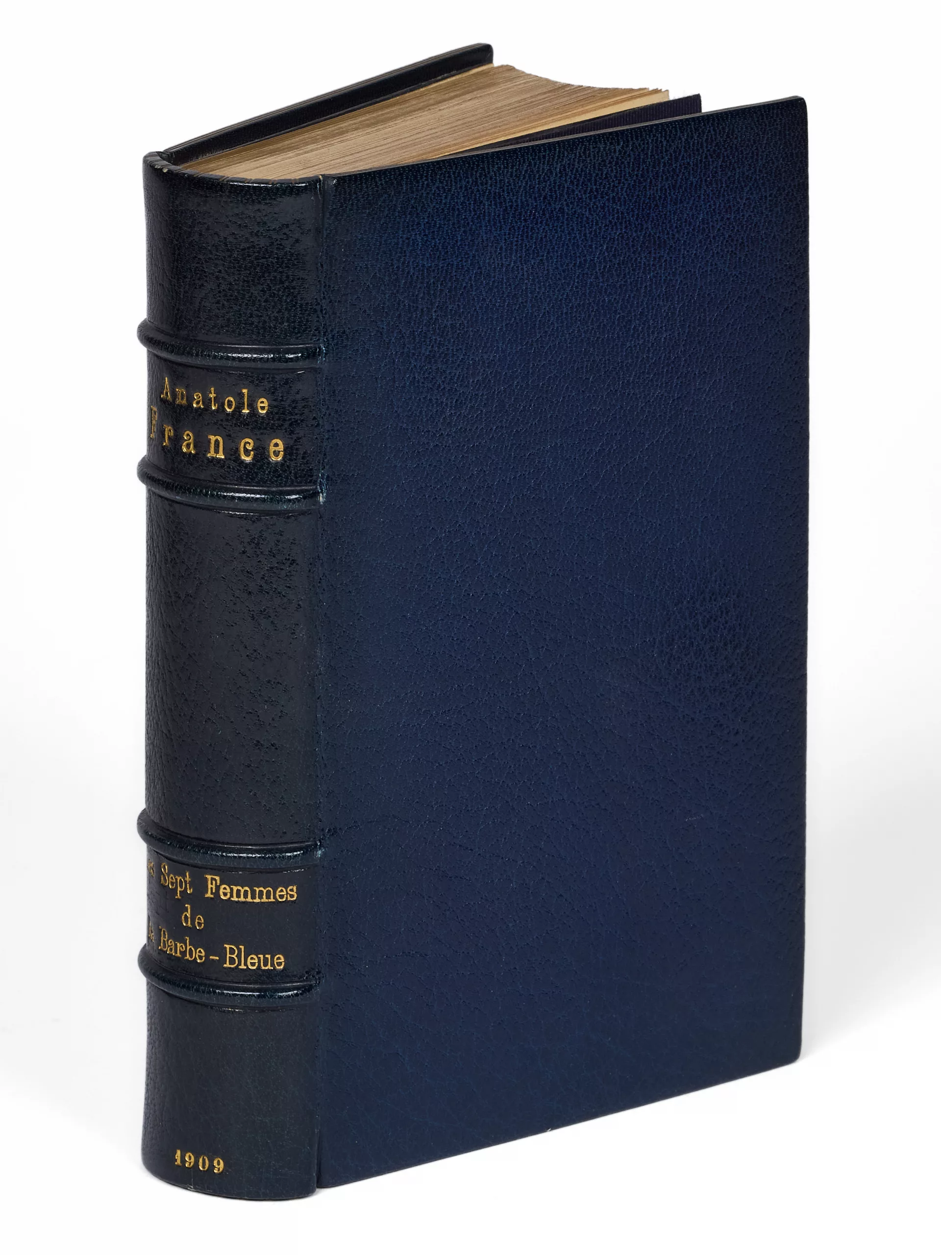 Anatole France incarne une forme d’esprit à la française, digne héritier de cette liberté intellectuelle incarnée par Rabelais, Montaigne, Voltaire et quelques autres. Il donne ici une vision totalement différente du conte publié par Charles Perrault en 1697, en soutenant une version, presque farfelue et masquée par un faux sérieux, dans laquelle il se plaît à prendre le contre-pied de l’histoire telle qu’elle nous est connue, tout en respectant la trame originelle : il part de l’idée que Barbe bleue a bel et bien existé et souhaite le réhabiliter ; sous sa plume, Barbe-Bleue devient ainsi un brave homme, un peu timide, bonne pâte, qui fut bien plus la victime de ses successives épouses qu’elles ne le furent de lui. Une version irrévérencieuse et brillante, loin de l’image lisse et conformiste d’Anatole France donné comme « un cadavre » hâtivement enterré par les surréalistes.