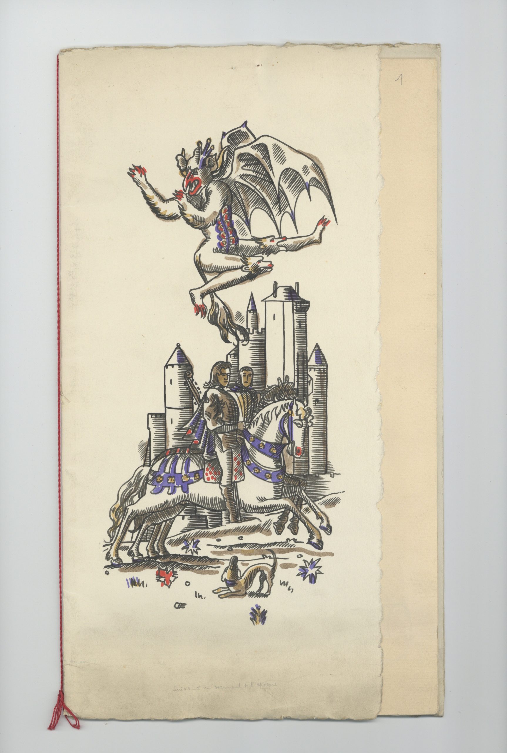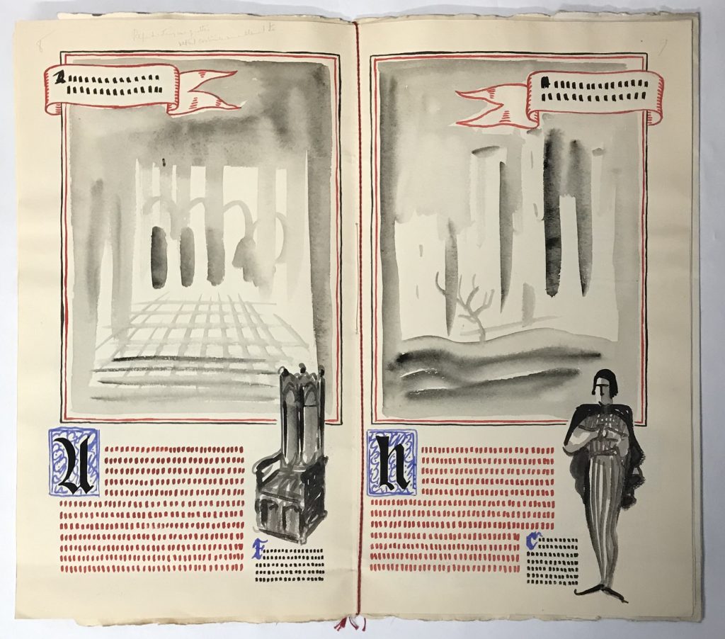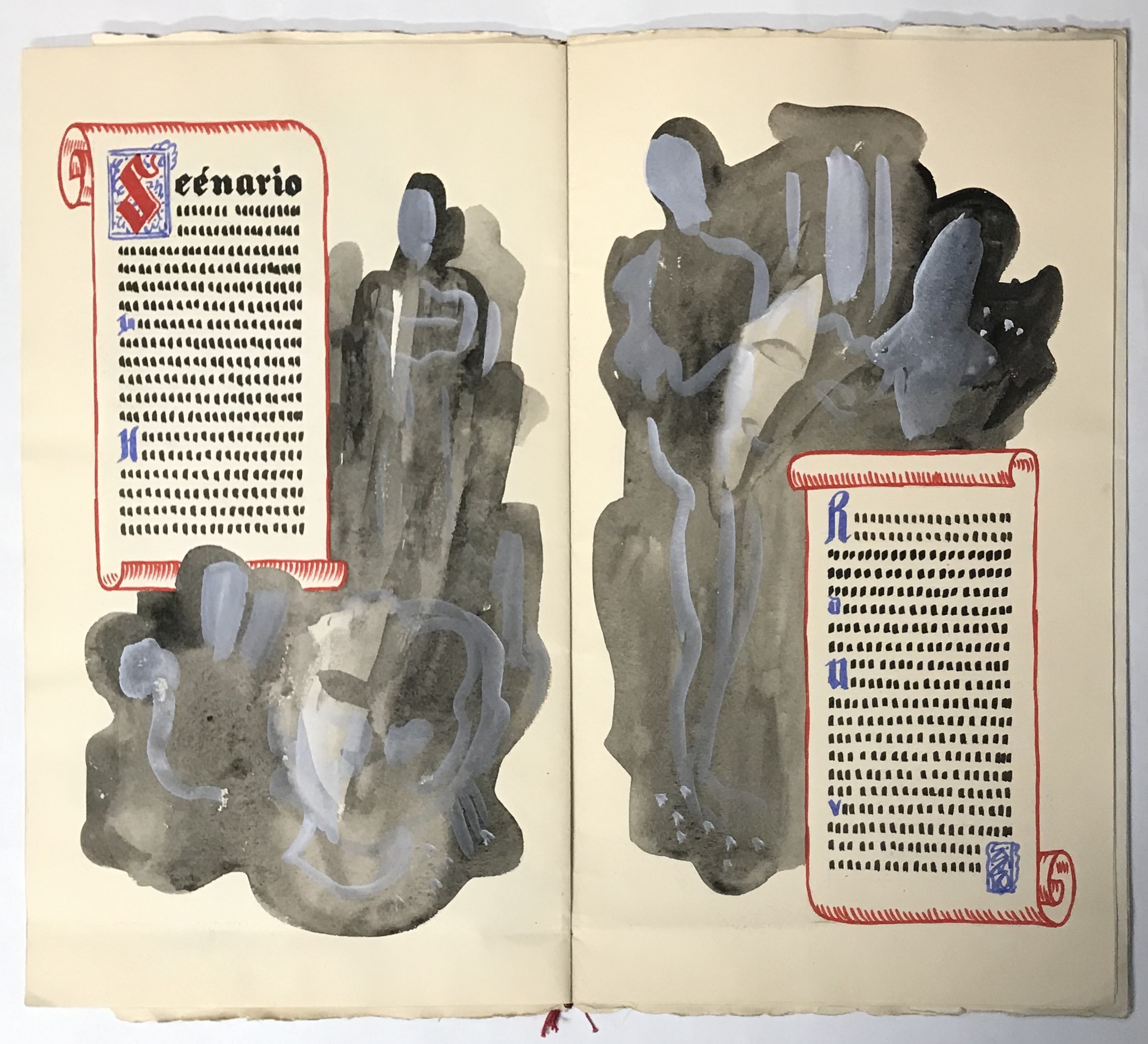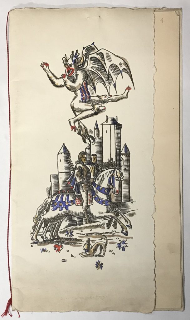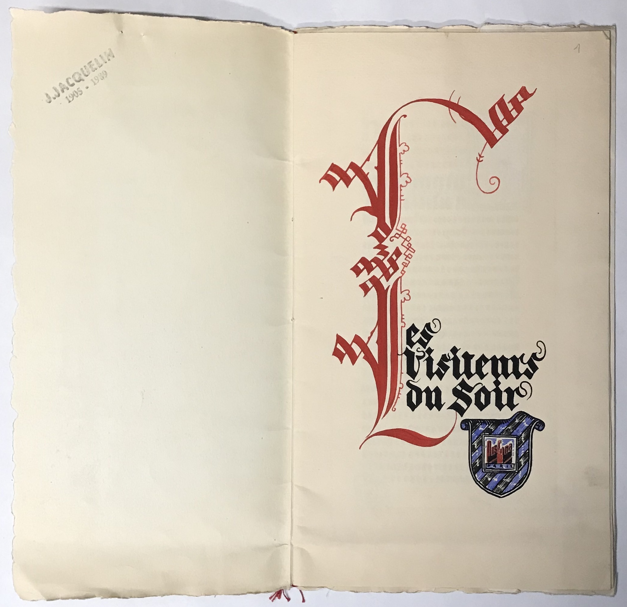 C’est ici un projet de maquette de cette plaquette éditée : Jacquelin en propose une interprétation classique et merveilleuse du scénario avec des vignettes entourant le synopsis du film, ainsi qu’il sera créé pour la soirée du 4 décembre.