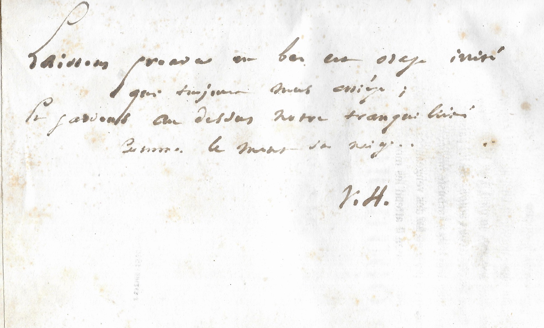 [Les Voix intérieures : A Olympio] Billet autographe signé