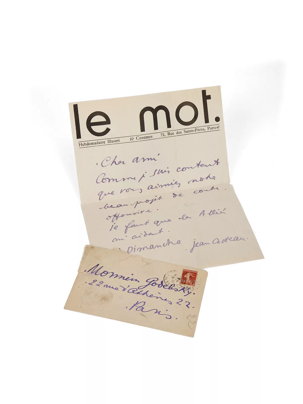 Brève et enthousiaste, cette lettre autographe signée de Jean Cocteau s’adresse à Cypa Godebsky, le demi-frère de Misia Sert :