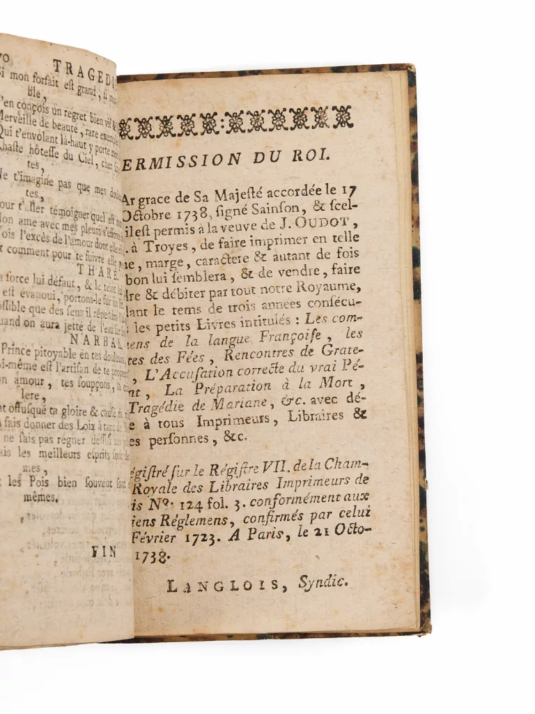 Il s’agit de l’une des nombreuses rééditions de ce classique de Tristan L’hermite (1601-1655), dont l’originale a paru chez Augustin Courbé en 1637. Cette édition XVIIIe comporte au feuillet de titre la mention fautive de « 1718 » pour 1738.