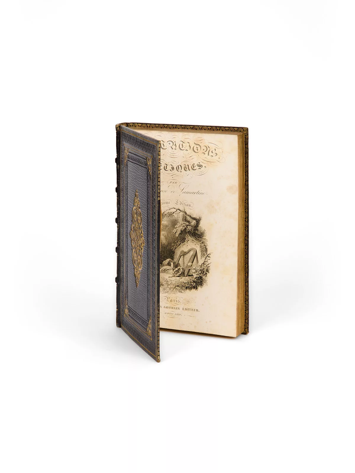 Par son lyrisme élégiaque, Méditations poétiques fit entrer Lamartine dans l’histoire littéraire comme l’un des initiateurs du romantisme en France, aux côtés de Hugo et Vigny. Cette édition luxueuse, parfaitement reliée, témoigne de la diffusion et du prestige du texte et de la renommée de son auteur.