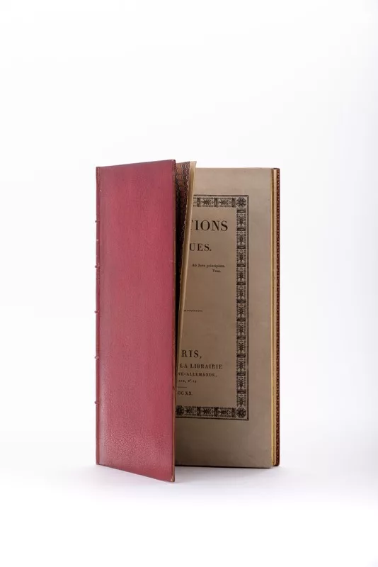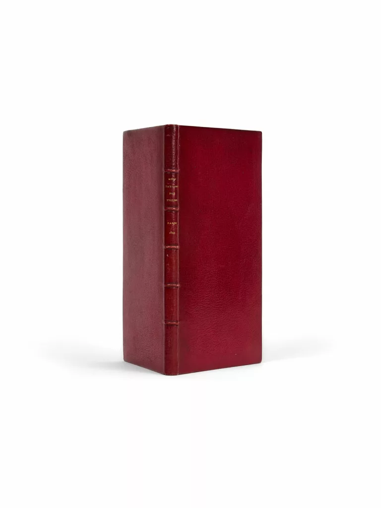 Très bel exemplaire, relié sur brochure par Duru et Chambolle, avec ses couvertures conservées. Hippolyte Duru exerça de 1843 à 1863, mais son nom est attaché à l’association qu’il forme à partir de 1861 avec René Victor Chambolle.